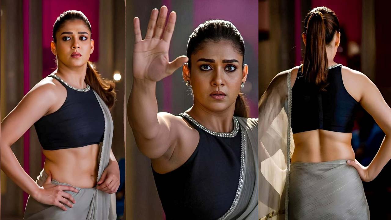 Nayanthara spicy navel exposed in sleeveless saree – latest photos..