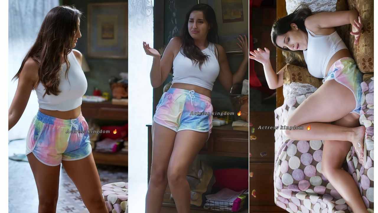 Nora fatehi sizzles in a mini trouser and cropped top.