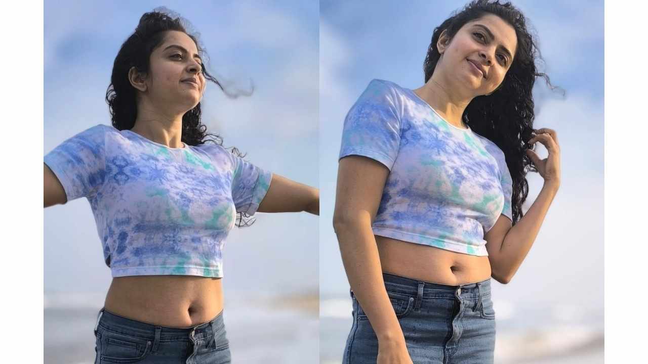 Gayatri rema gorgeous beach photos in cropped top and jeans..