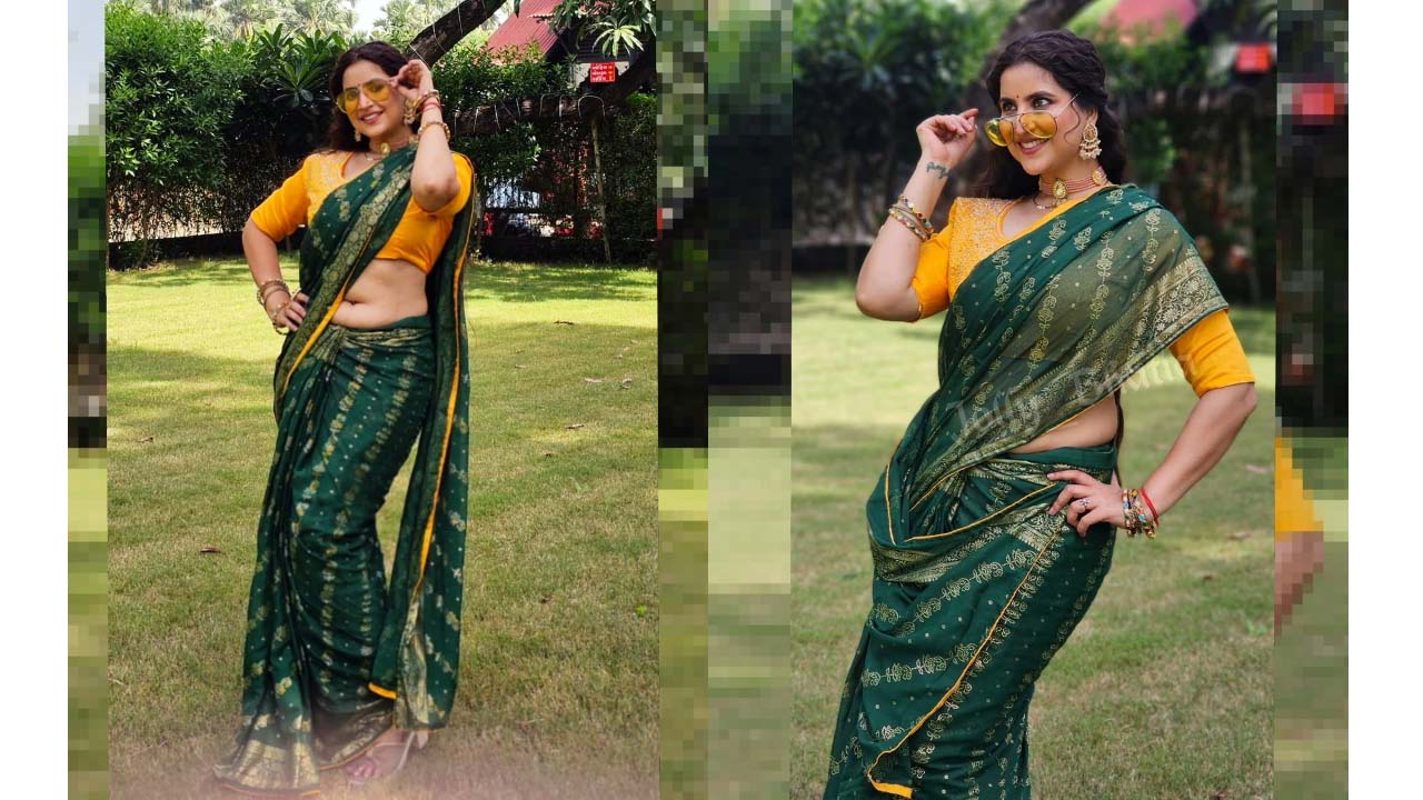 Jolly bhatia gorgeous navel exposed in green designer saree..
