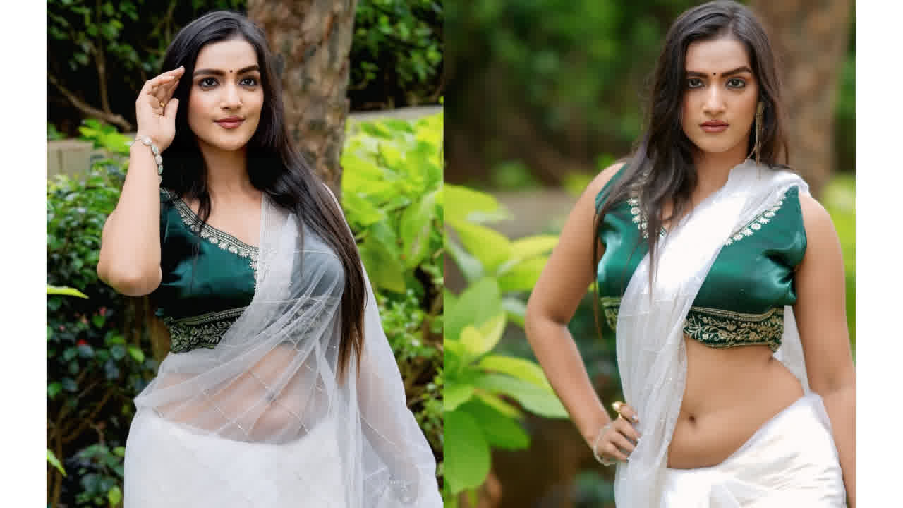 Avantika mishra silky navel exposed in red sleeveless saree..