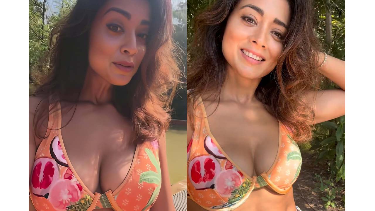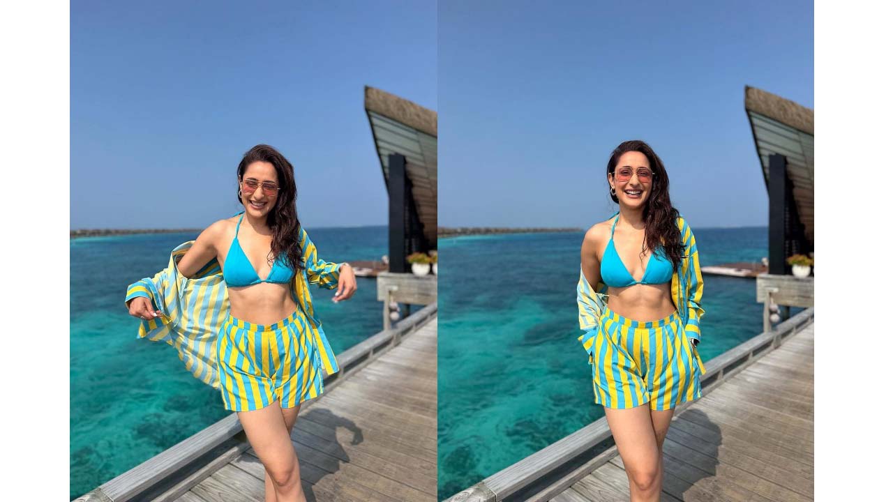 Pragya jaishwal poses hot in a bikini top and shorts..