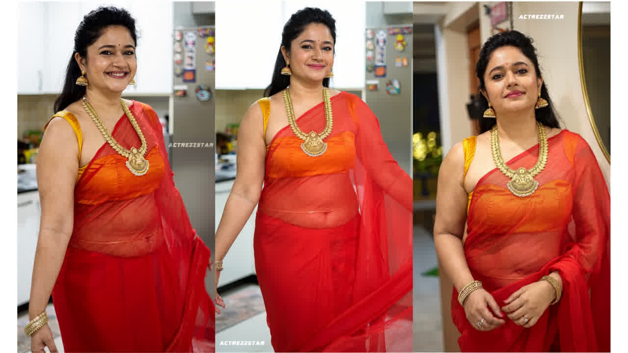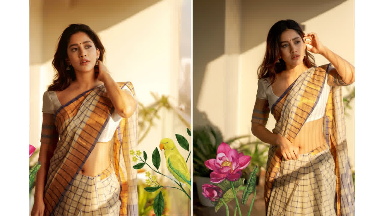 Nabha natesh silky navel exposed in saree..