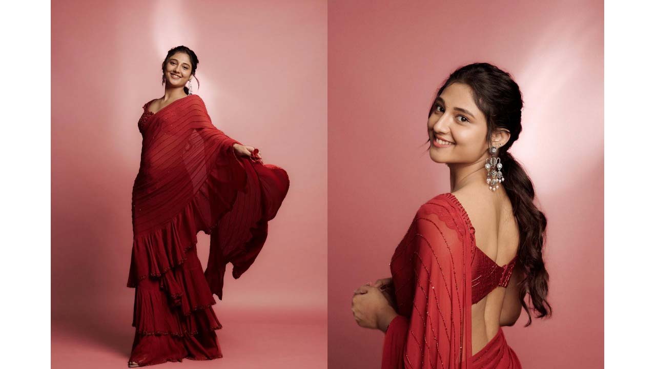 Ritika nayak looks cute and gorgeous in red sleeveless saree..