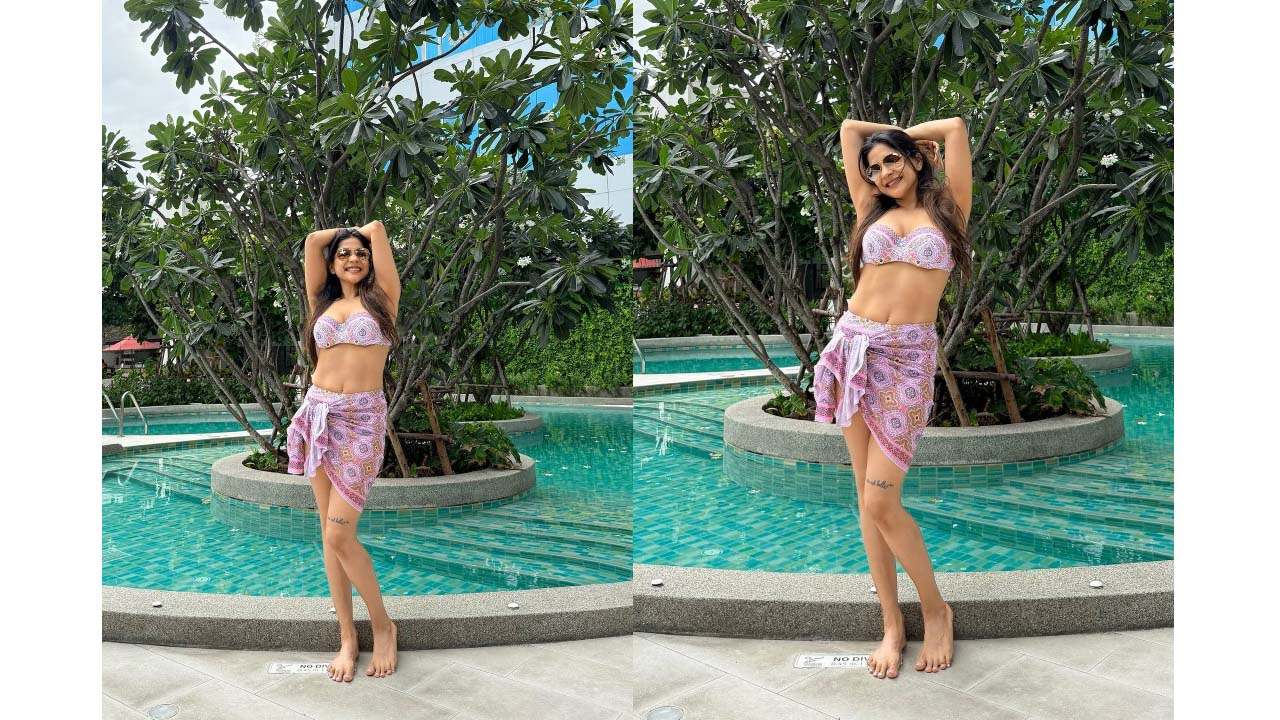 Sakshi agarwal hot and spicy two piece pool side photos..