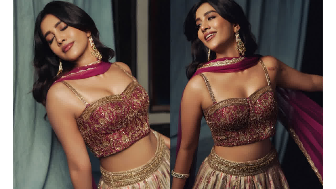 Nabha natesh poses hot in cropped top and full skirt..