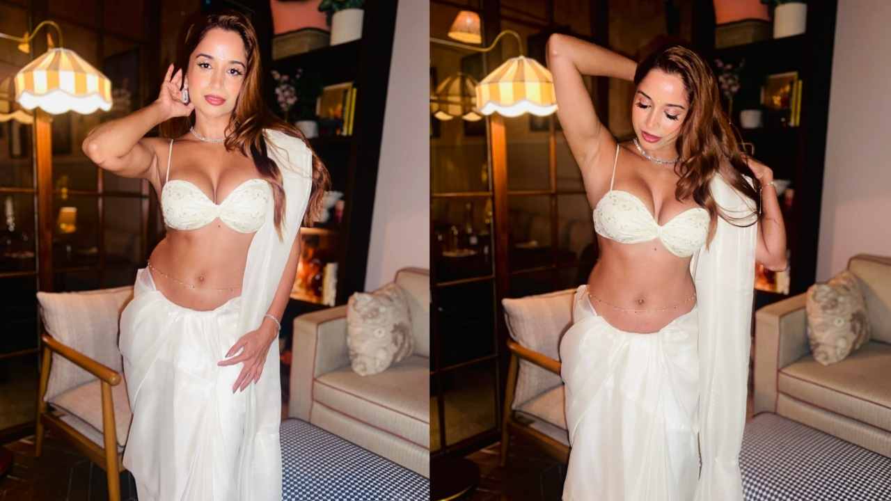 Pooja bhalekar awesome photos in white bikini blouse & saree..