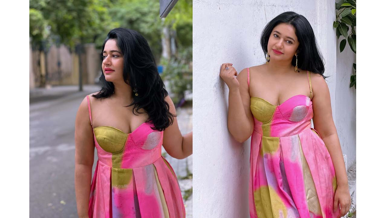 Sadha looks cute and gorgeous in glittering bodycon gown..