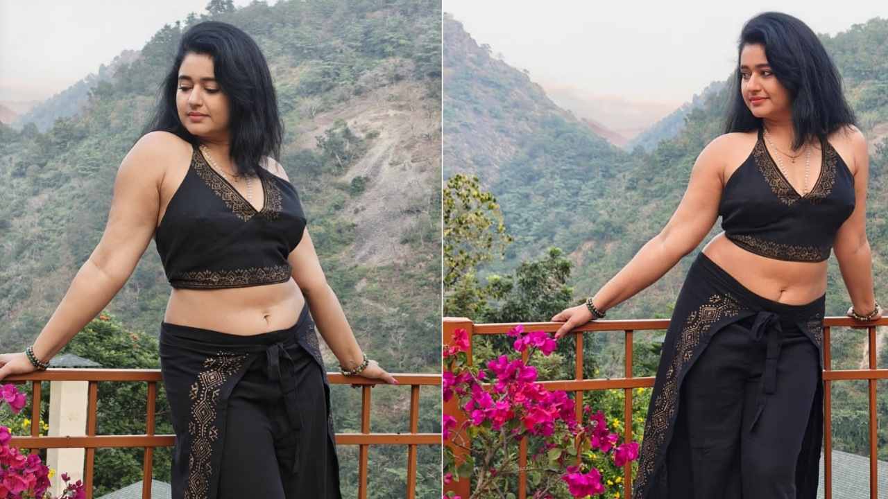 Pooja Hegde, in a black bikini blouse and black transparent saree, is giving super hot poses…
