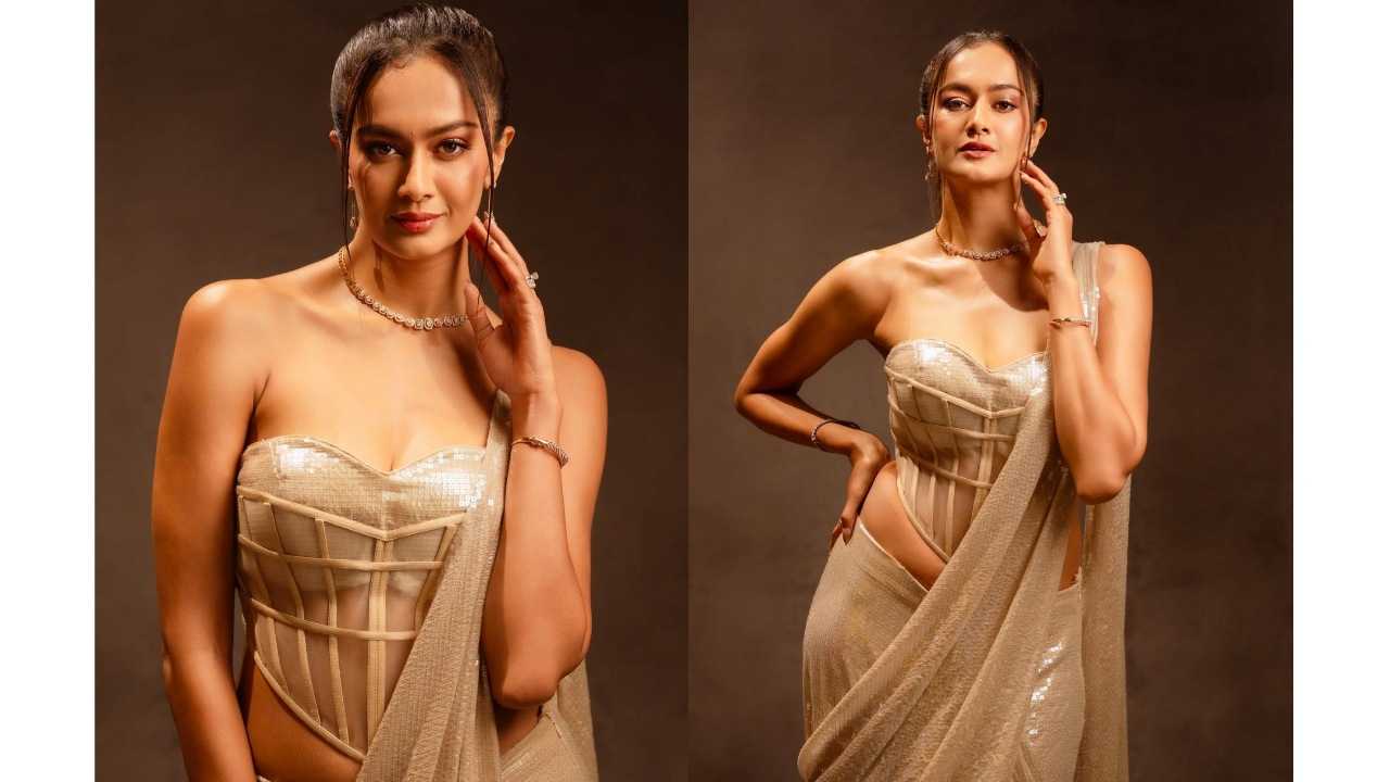 Shubra aiyappa poses hot in a spicy strapless saree.
