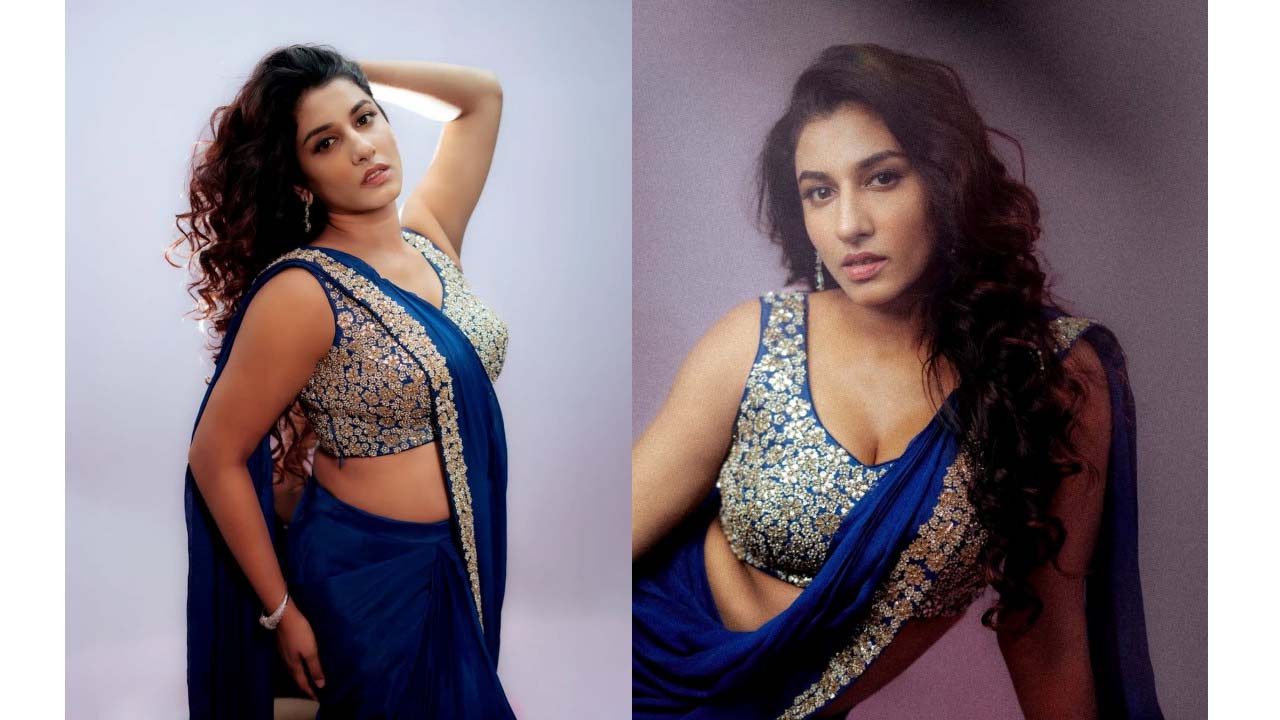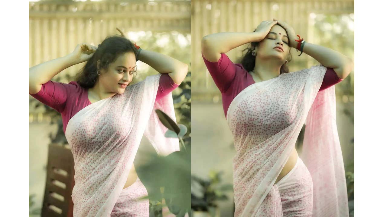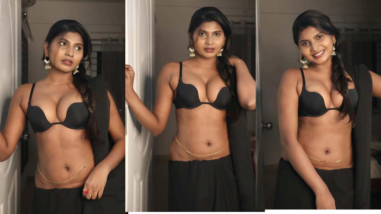 Bigg boss 8 tamil fame Varshini venkat gorgeous navel exposed in sleeveless saree..