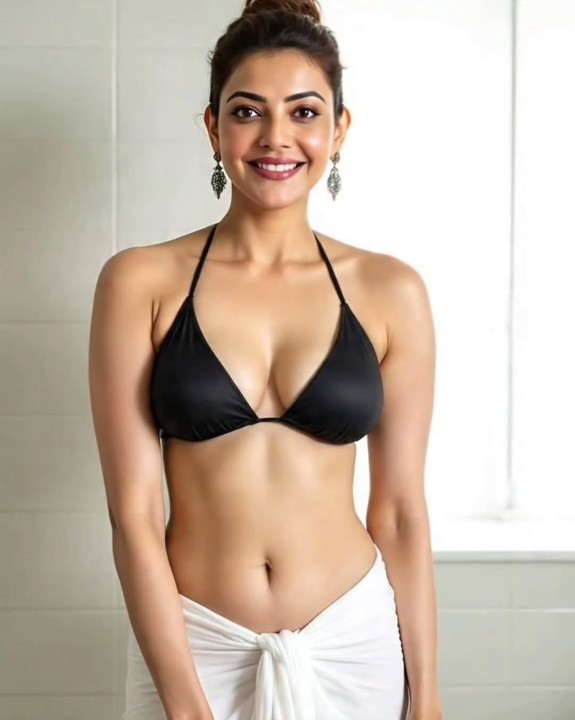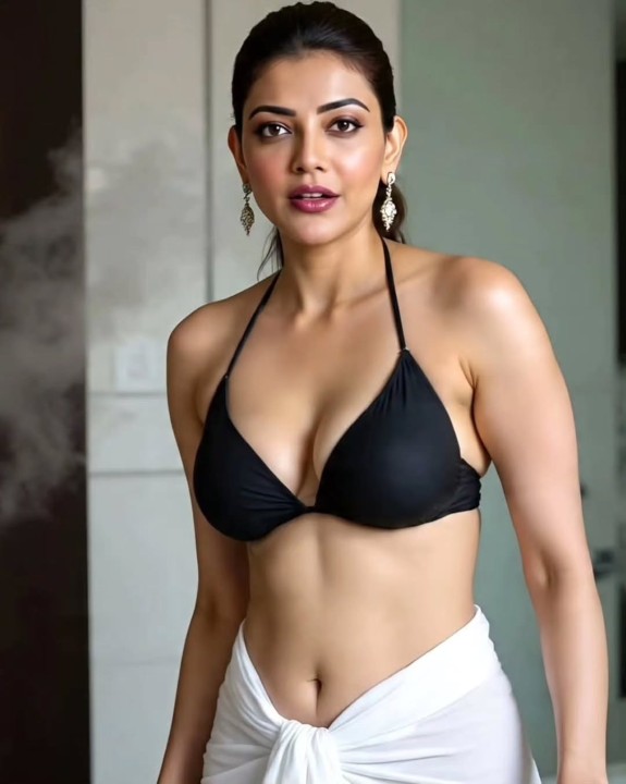 Kajal aggarwal is one of the leading south indian actress and model. She still acts in lead glamour roles even at the age of 40. Recently, her fans have made some AI generated photos of actress kajal aggarwal in a black bikini top and white skirt, exposing her silky toned physique and slim navel to her fans. Here let me post some of these hot ai generated photos of actress kajal aggarwal in black bikini top for your viewing pleasure guys.