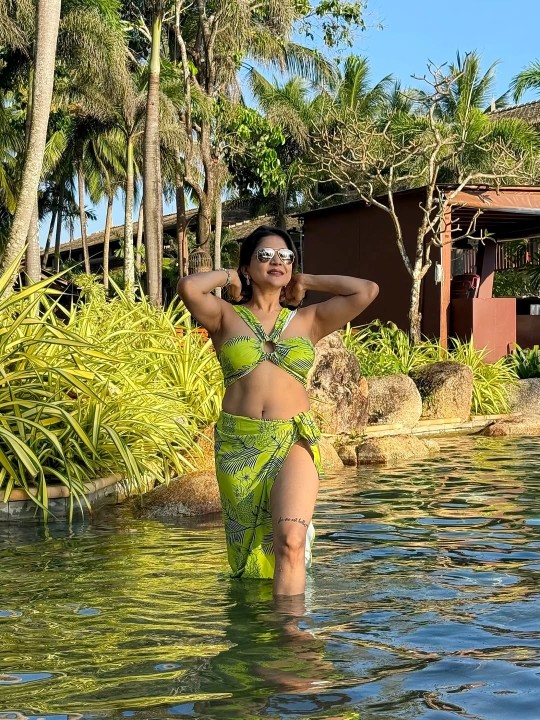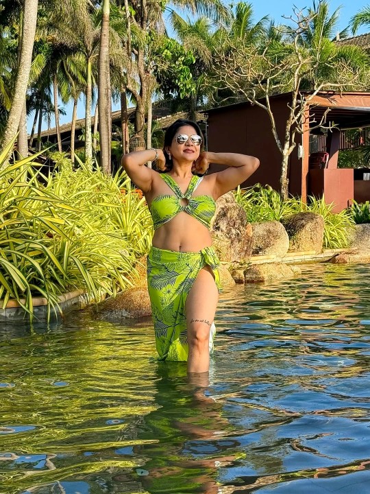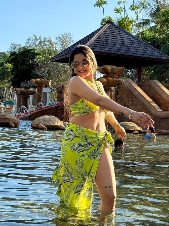 Sakshi agarwal got married to her childhood friend navneet last year. Recently sakshi agarwal went to maldives to spent her vacation. At maldives sea resort, sakshi agarwal dressed up in a bikini top and gave some hot poses exposing her hot navel and silky thighs. Here let me present you these spicy two piece photos of actress sakshi agarwal for your viewing pleasure friends. Enjoy her hotness guys.