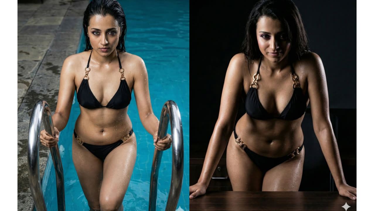Trisha spicy AI generated black bikini photos..