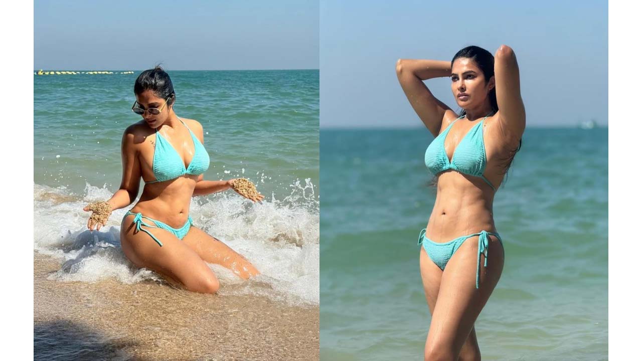 Divi Vadthya spicy two piece beach bikini photos..