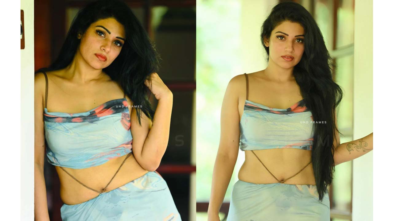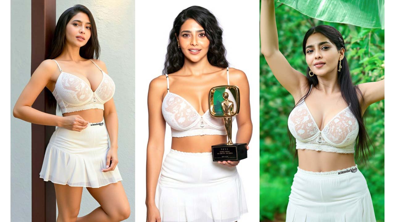 Aishwarya lekshmi hot photos in white bralette top and short skirt..