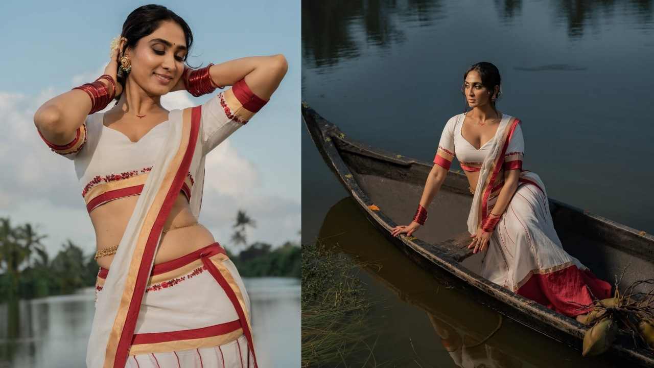Deepti sati hot and glamorous onam photoshoot in white saree.