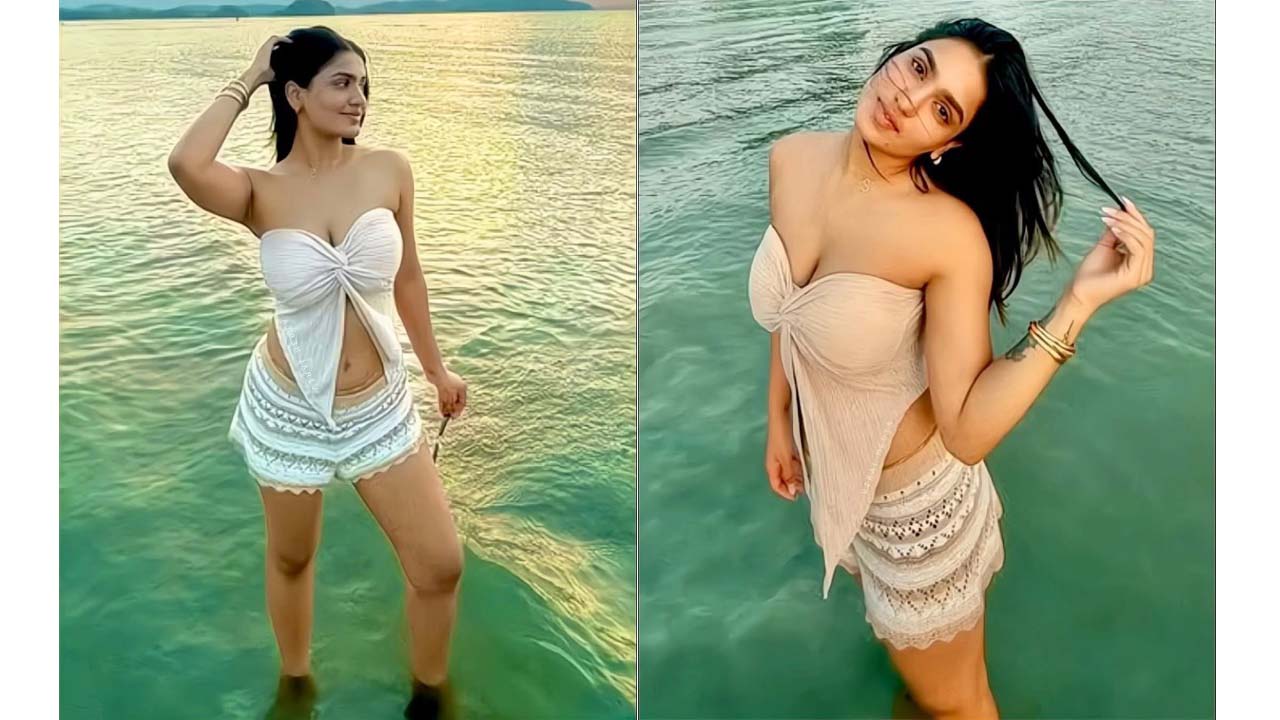 Saniya iyappan thunder thighs exposed in mini trouser – Hot beach photos.