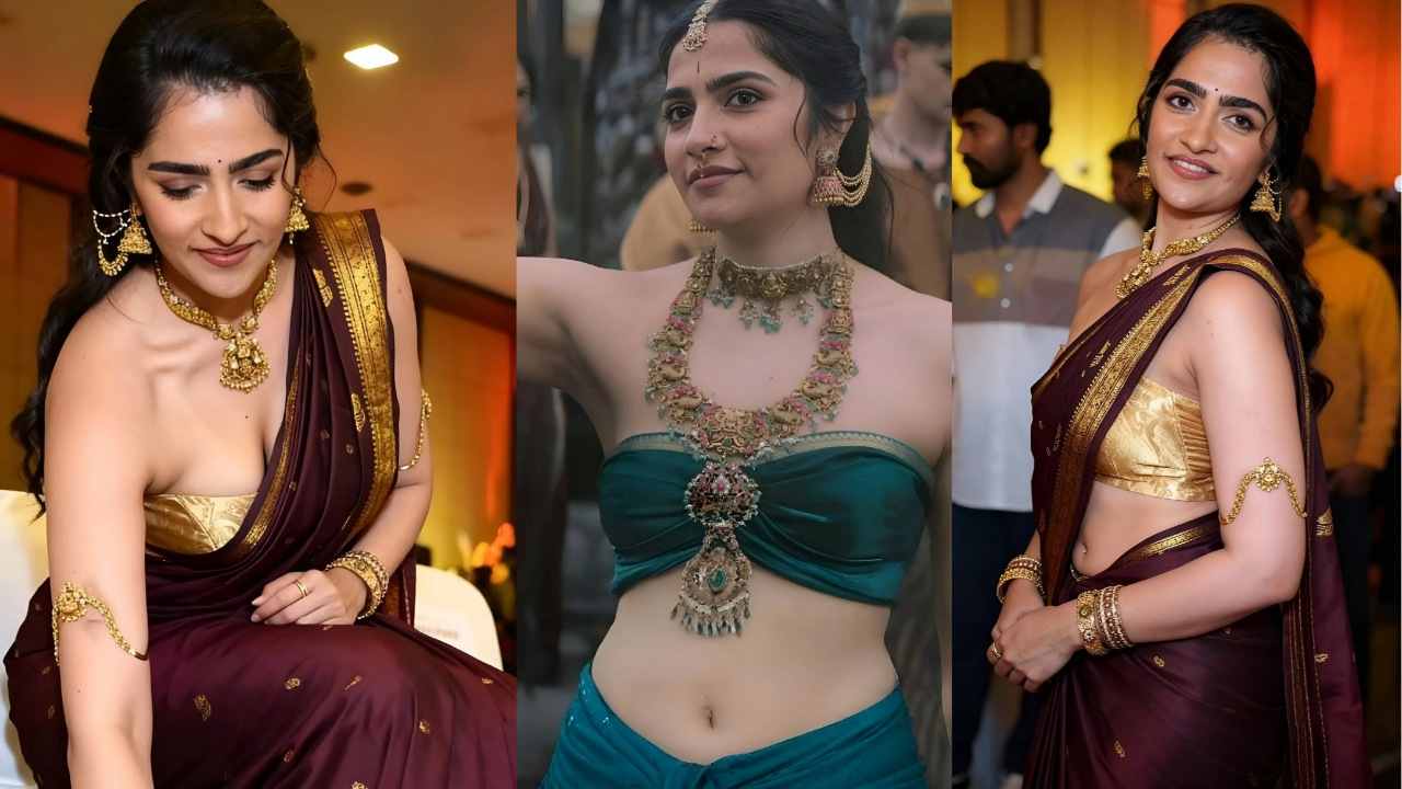 Rukmini vasant hot saree stills from Kantara chapter 1 movie.