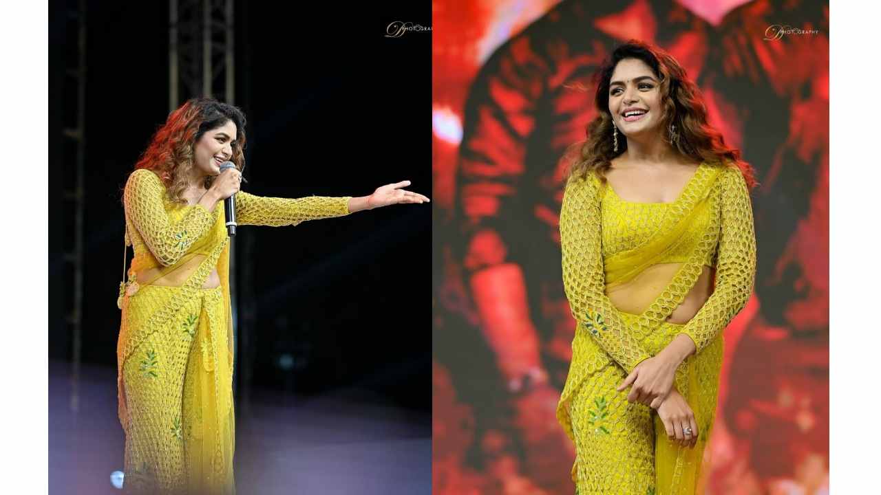 Aditi shankar silky navel exposed at bairavam movie trailer launch event