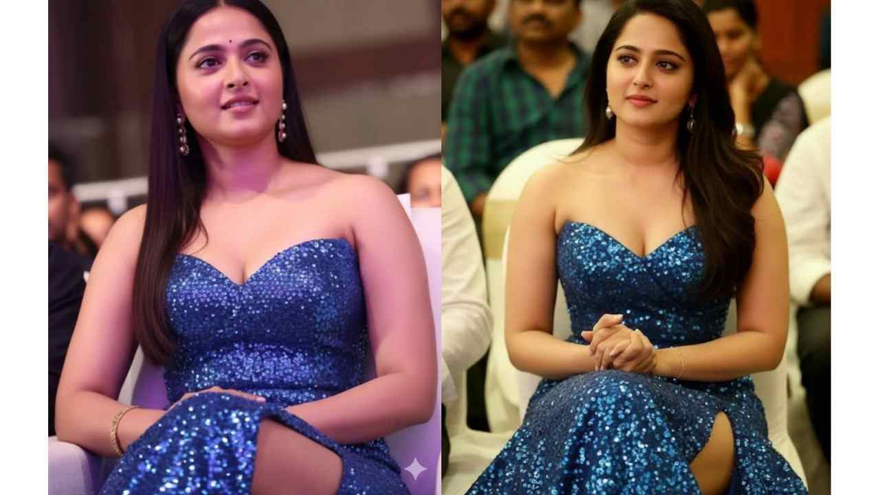 Anushka shetty cute & homely photos in strapless glittering gown..