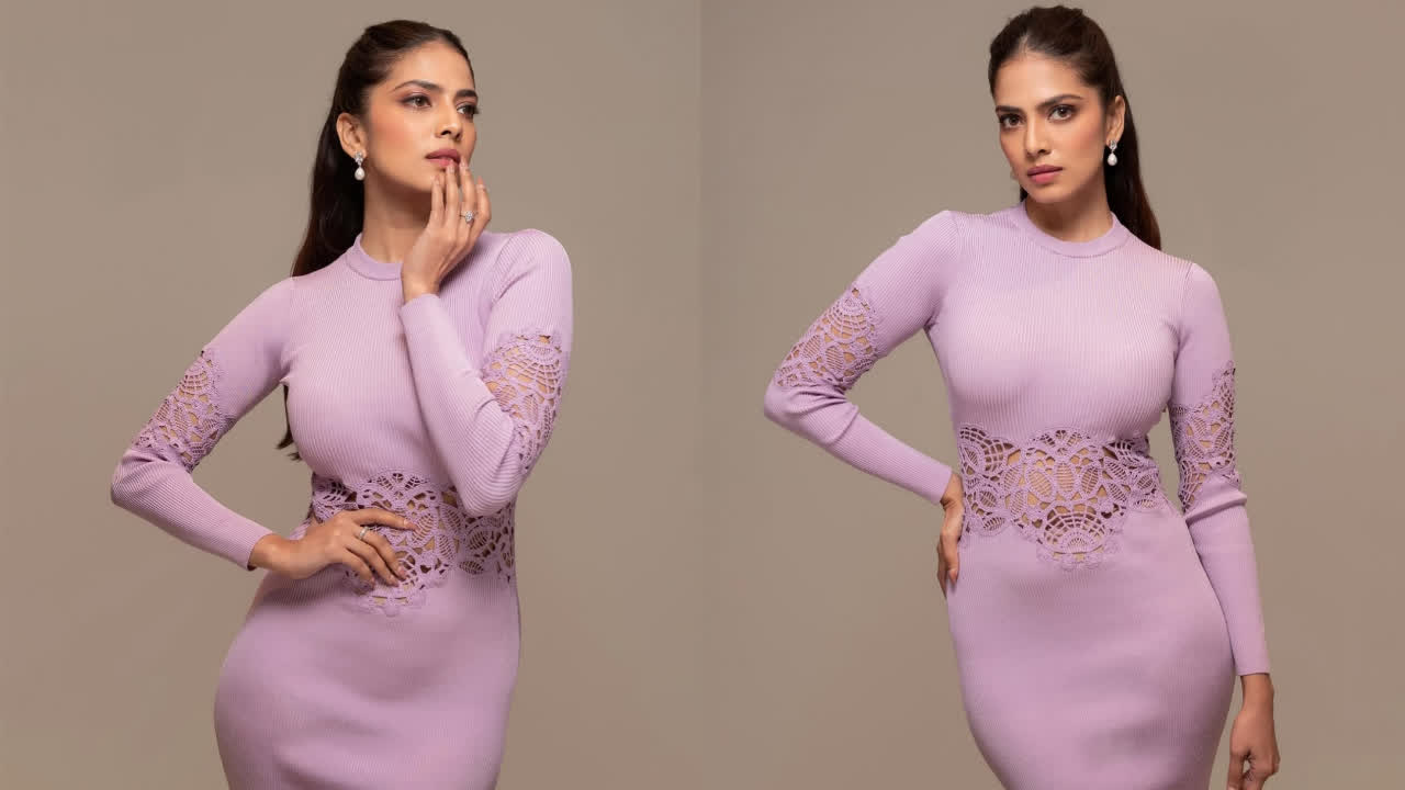 Malavika mohanan poses hot in rose color bodycon gown..