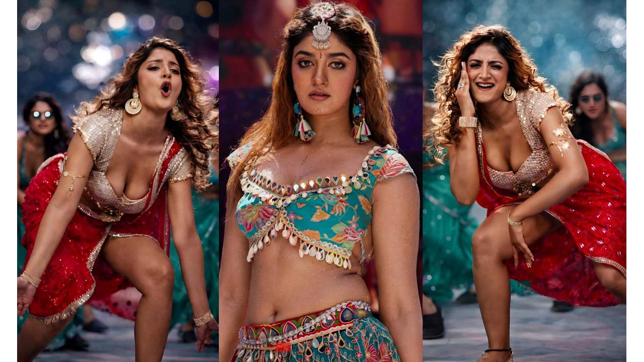 Bhagyashri borse chubby navel stills from Mr Bachchan movie..