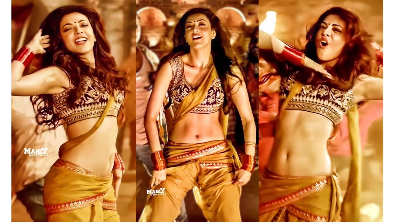 Kajal Aggarwal flaunts her navel in a bralette top during a song sequence.