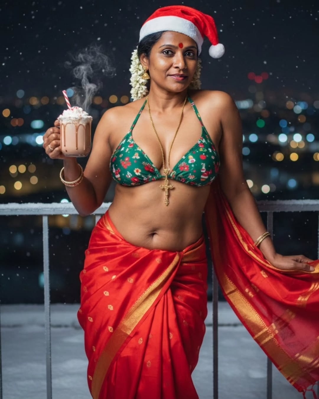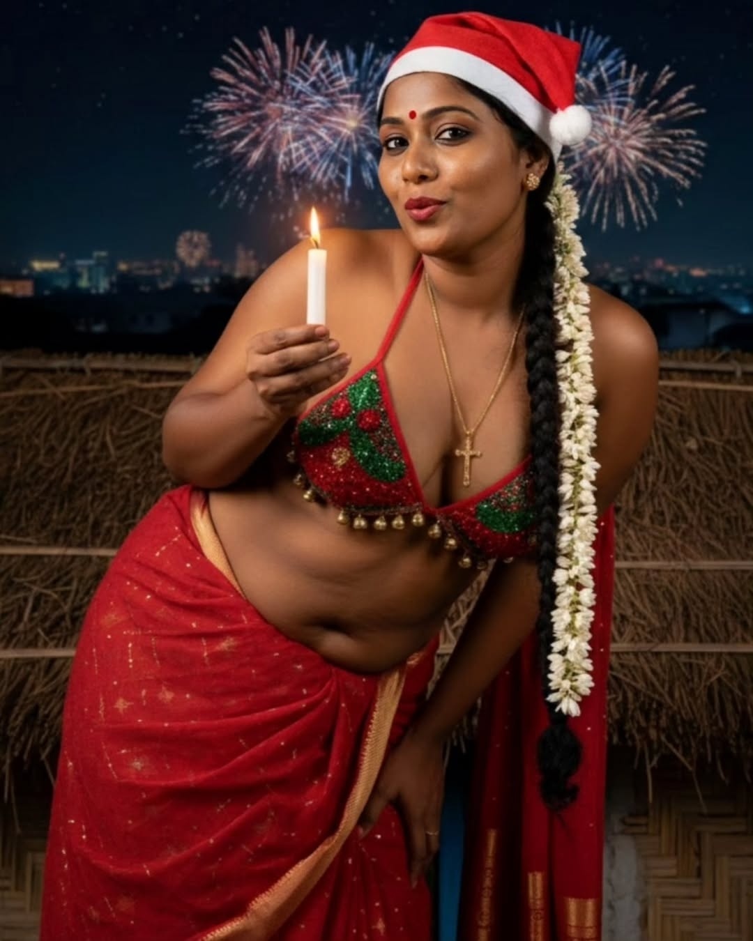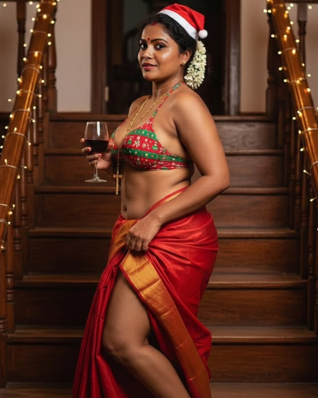 Yesterday when i surf insta pages, i found some hot AI generated tamil aunty dressed up in a bikini top and red saree with a christmas santa cap in head. These ai generated tamil village aunty christmas photos looks very hot and spicy bu exposing chubby dusky navel to her fans. I want to share these hot tamil village aunty ai generated christmas photos with u friends. So i posted these hot ai generated photos here for your viewing pleasure.friends…