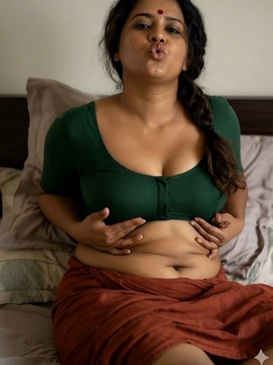 Today social medias are flooded with actress and auntys hot AI generated photos. Yesterday i saw few AI generated photos of a hot mallu aunty giving some hot and spicy poses in green blouse and brown skirt, without saree. In these hot AI generated photos, netizens were tempted by her chubby dusky navel, navel folds and curvaceous physique. Here let me post some of these gorgeous AI mallu aunty photos for your viewing pleasure friends.
