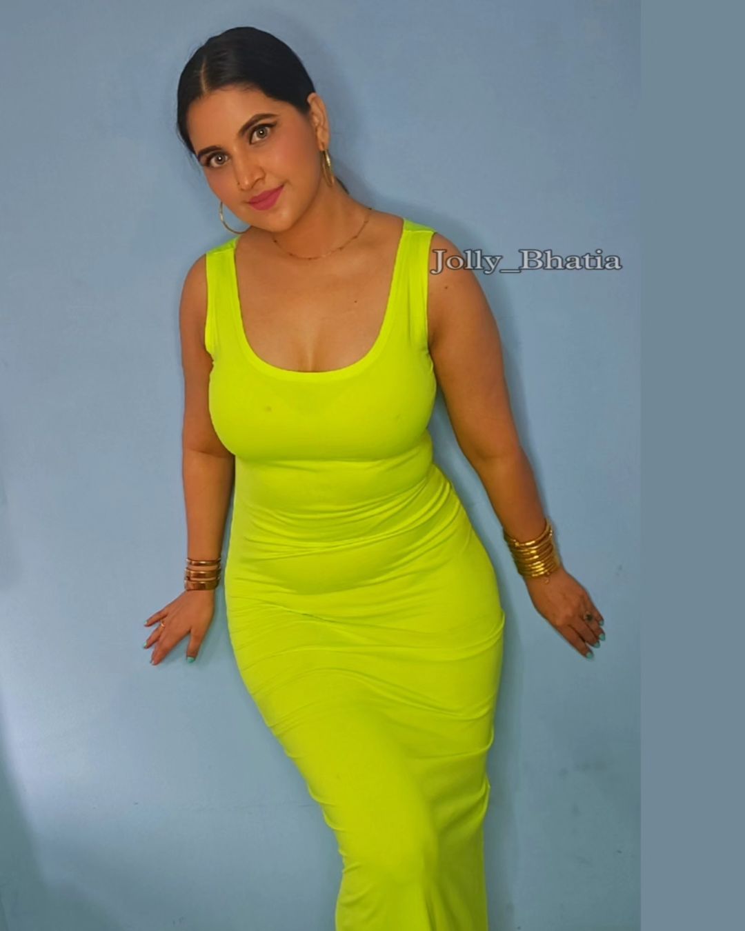 Jolly bhatia, age 35, born and raised up in mumbai, is one of the hot and gorgeous hindi web series actress, model and social media influencer. Few days back, jolly bhatia posed hot in a low neck sleeveless tight gown. In this hot outfit, jolly bhatia exposed her chubby body physique and cleavage to her fans. Here lemme post some of these gorgeous photos of actress jolly bhatia. Enjoy her hotness guys.