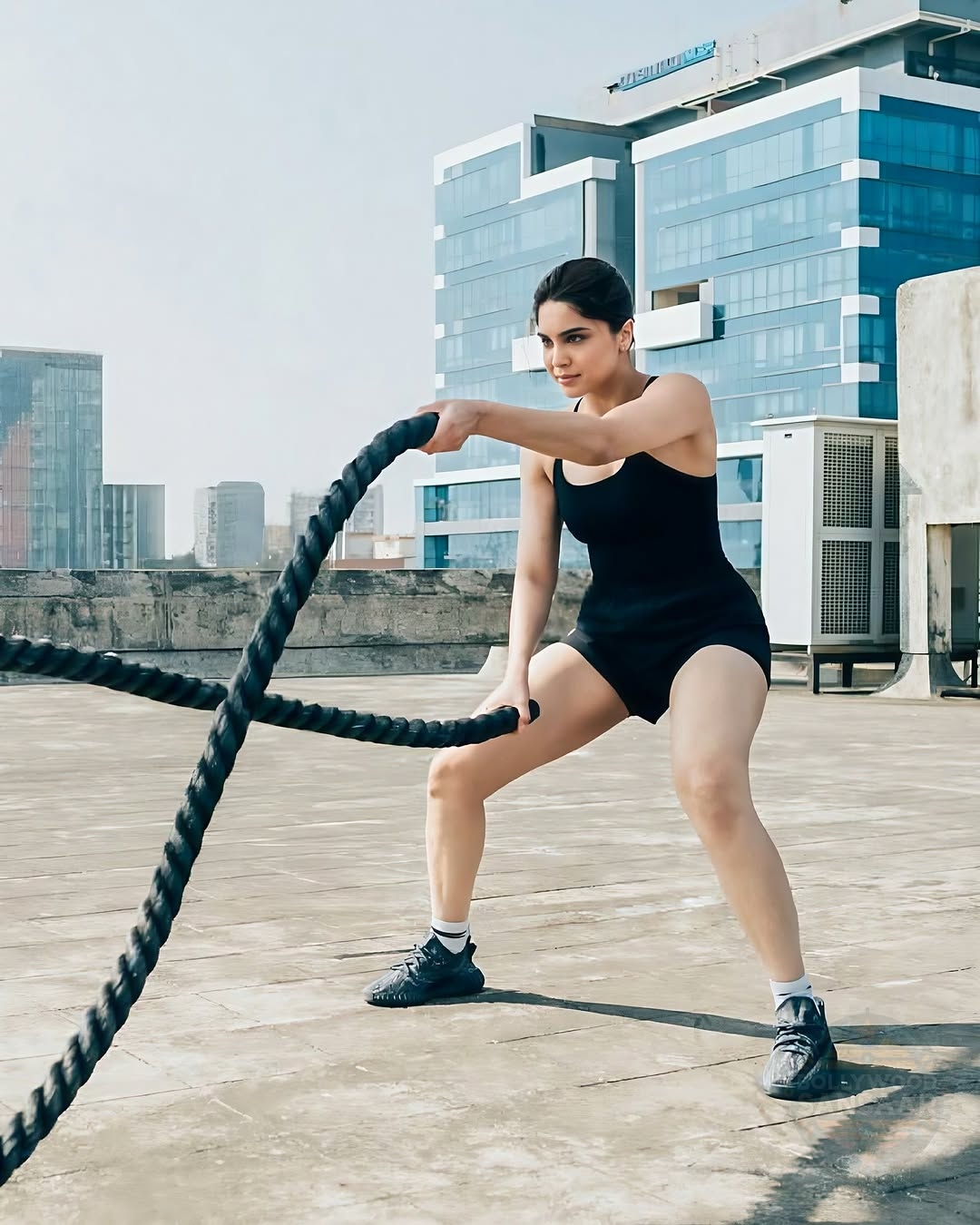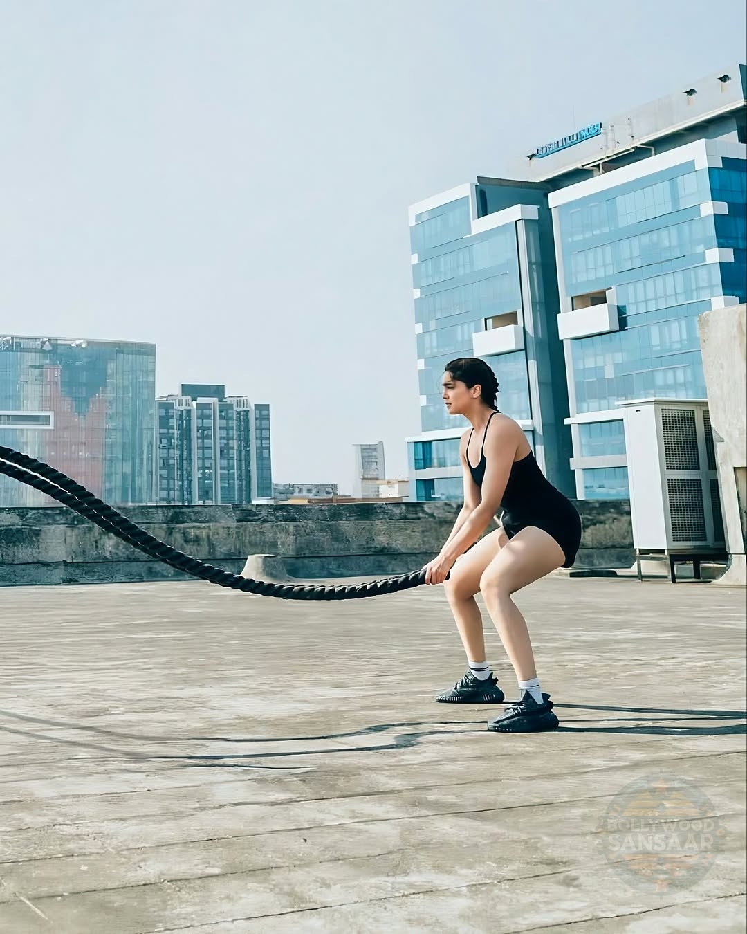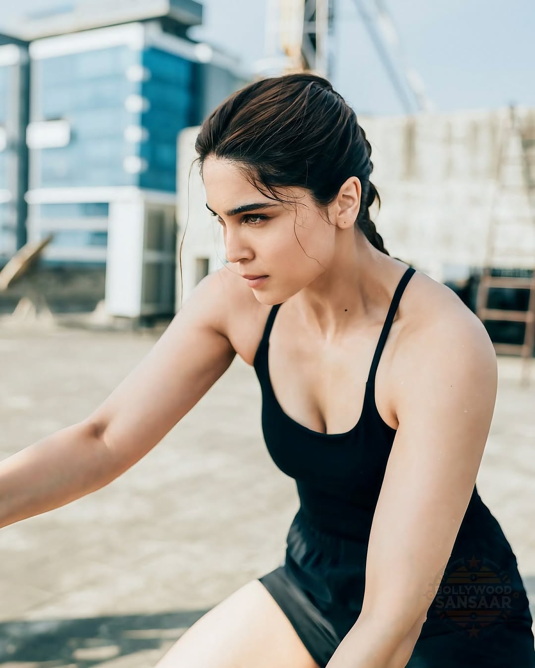Sharvari Wagh, age 29, is a Bollywood actress and model born and raised in Mumbai. Recently, she shared photos of herself doing intense workouts, dressed in a tight sleeveless top and mini shorts. With her radiant thigh display, Sharvari serves up a visual treat for her fans – enjoy these hot clicks here friends!