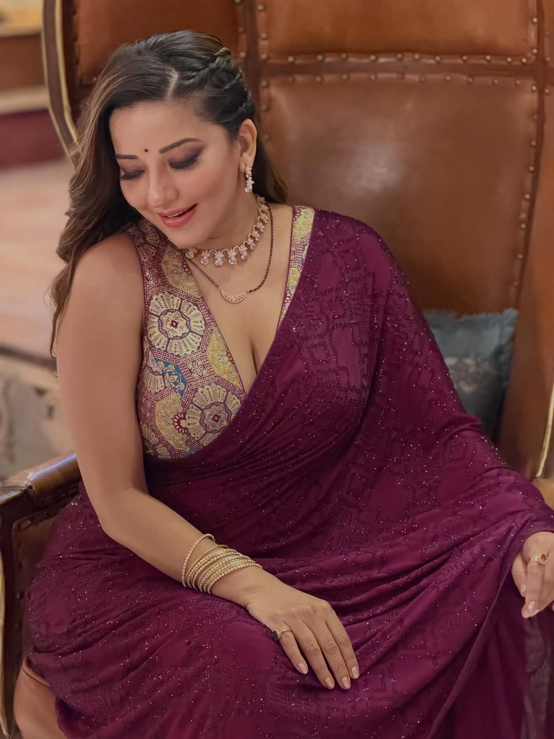 Monalisa, born as antara biswas, age 43, born and raised in kolkata, is one of the leading movie actress, hindi tv serial actress and model. She also actively posting her hot photos in her insta account and tempting her fans with her hotness. Recently, asli monalisa clicked her gorgeous saree photos in a low neck maroon color saree, flaunting her toned physique and spicy cleavage to her fans. Enjoy these hot photos of actress asli monalisa here guys.