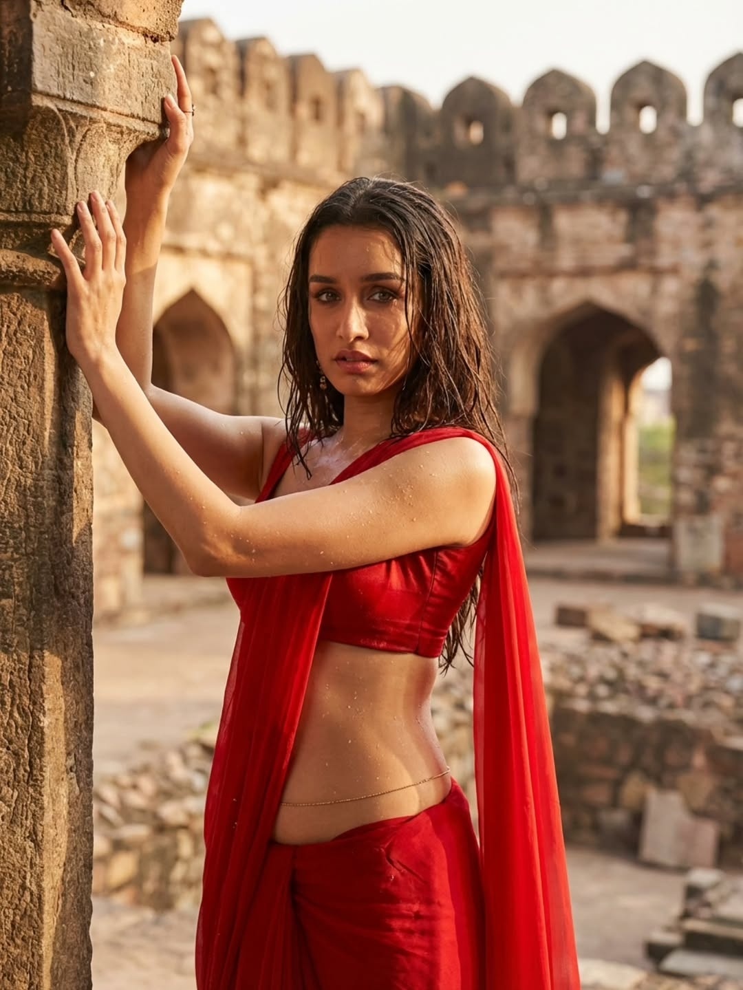 Shraddha kapoor has a huge fan followers in social medias as her photos often makes great waves in social medias. Recently some of the hot ai generated photos of shraddha kapoor in sleeveless red low hip sarees went viral in insta fans pages. In these hot ai generated photos, the glamour queen shraddha kapoor flaunted her toned physique and silky navel to her fans. Here let me pist these spicy ai generated red saree photos of shraddha kapoor. Enjoy her hotness guys.
