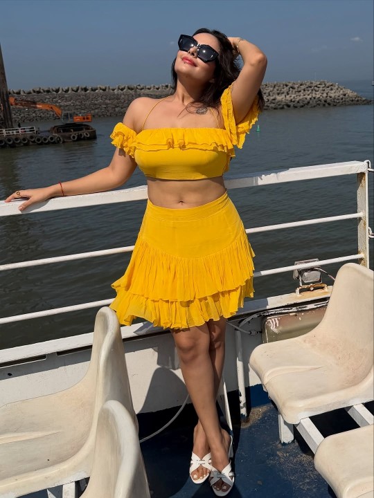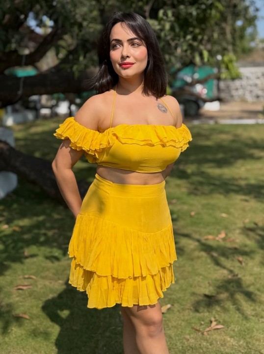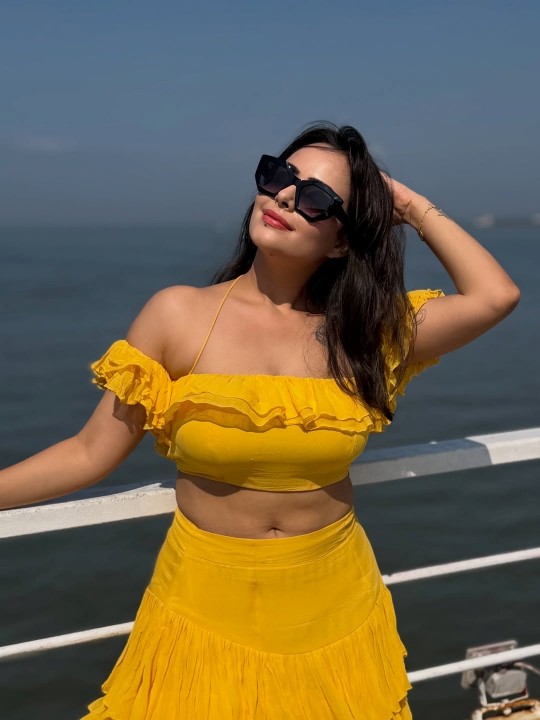 Aanchal munjal, age 27, born and raised up in hisar, haryana, is one of the leading and gorgeous indian actress and model. She predominantly appears in hindi movies. Recently, aanchal munjal clicked her outdoor photos in a yellow low neck top and matching short skirt, exposing her chubby cleavage and thunder thighs to her fans. Here let me post some of these gorgeous cleavage and thighs photos of actress aanchal munjal, enjoy her hotness guys.