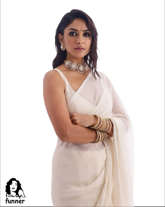 Mrunal thakur hot and spicy photos in white sleeveless saree..