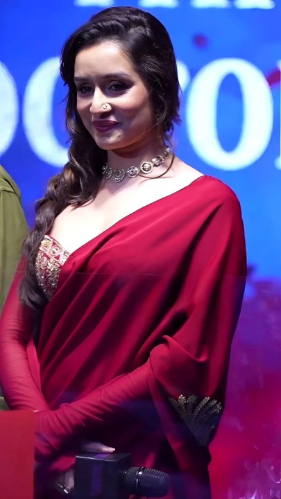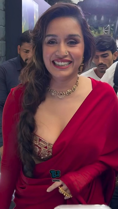 Shraddha kapoor, age 39, born and raised in mumbai, is one of the gorgeous and leading bollywood actress and model. Recently shraddha kapoor spotted in a low neck red color saree at “Thamma” Movie trailer launch event held at mumbai. In this saree outfit, shraddha kapoor exposed her hot navel folds and cute cleavage to her fans. Enjoy these hot red saree photos of actress shraddha kapoor here guys.