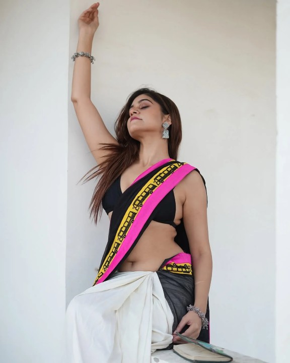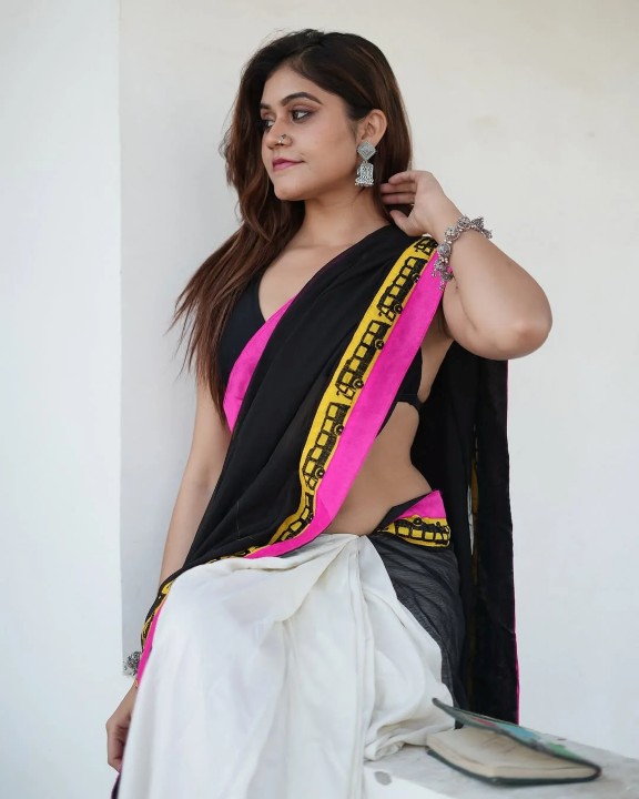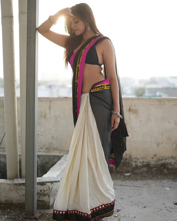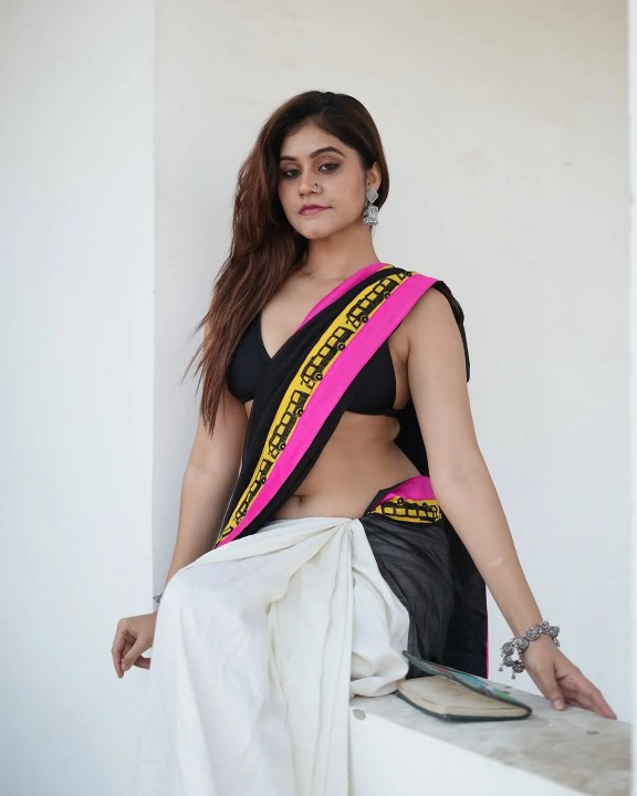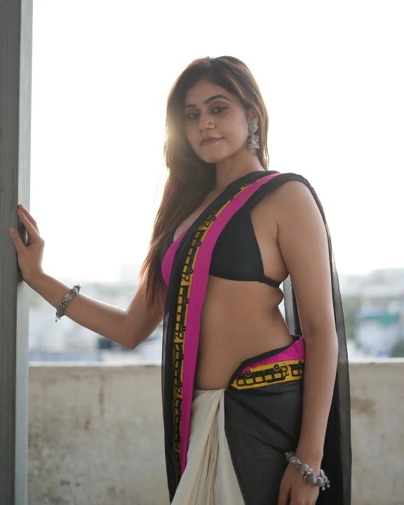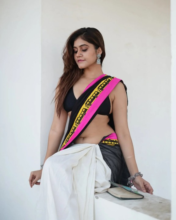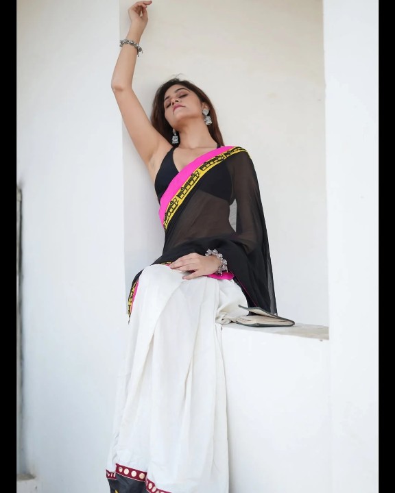 Mannat Chaudhary, a popular social media model, TikToker, and content creator, regularly participates in stunning photoshoots, treating her fans to glamorous visual delights. Recently, actress Mannat Chaudhary posed in a black and white transparent saree, flaunting her silky navel in a series of captivating photos. Enjoy these beautiful saree pictures of Mannat Chaudhary, dudes.