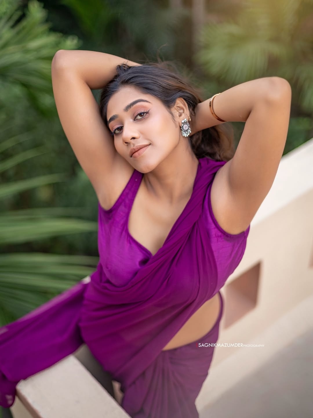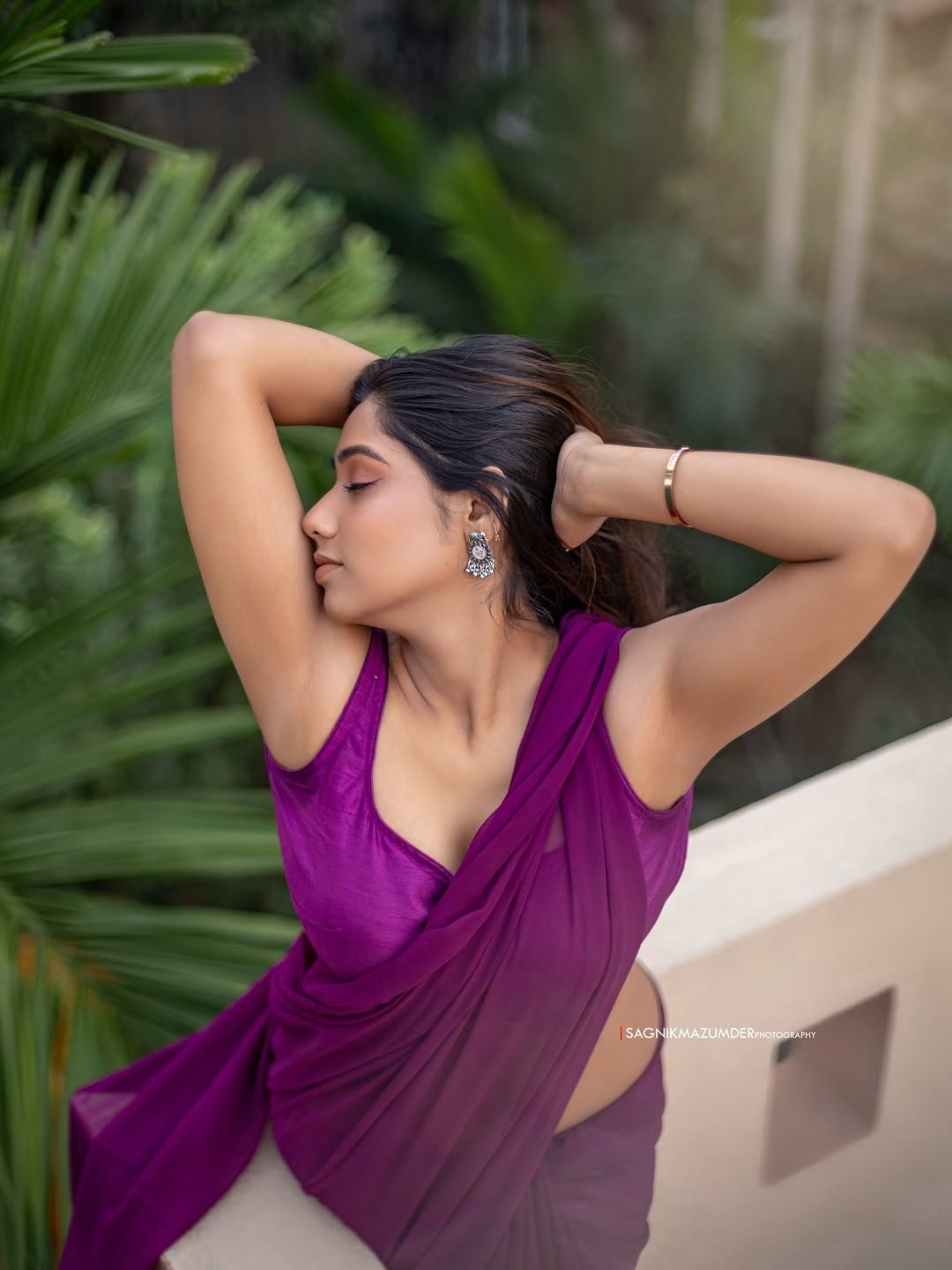 Purnima ghosh, born & raised in kolkata is one of the popular fashion & lifestyle model, content creator, insta star & social media influencer. Recently purnima ghosh dressed up in a hot maroon color sleeveless saree and clicked her top angle photos from her terrace. In these spicy top angle saree photos, purnima ghosh exposed her hot cleavage & navel to her fans. Get ready to witness these spicy top angle saree photos of kolkata model purnima ghosh here guys.