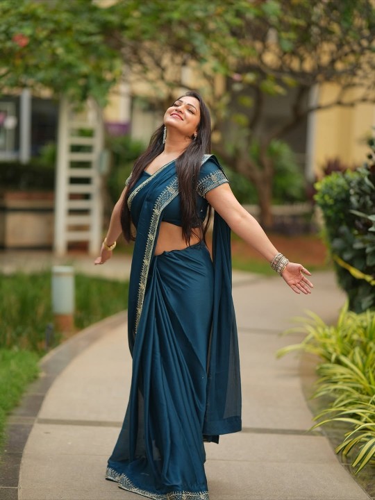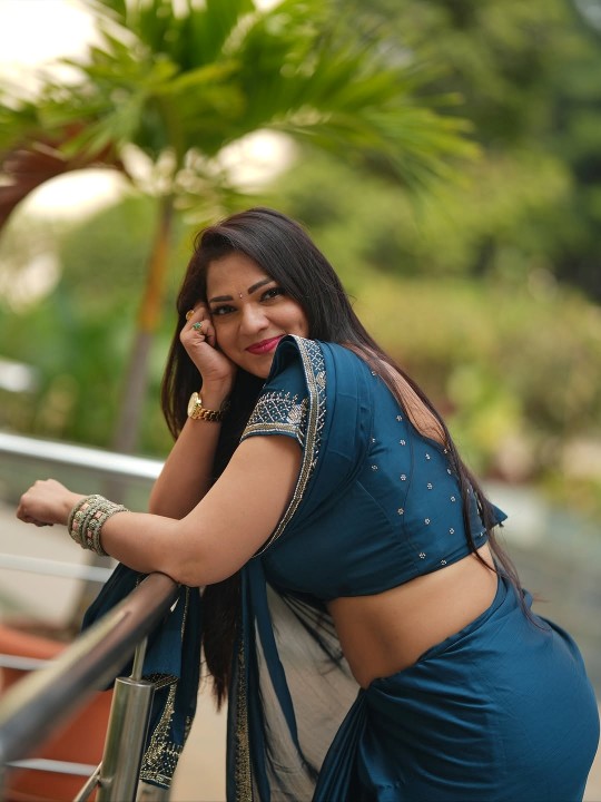 Ashwini sri, age 34, born and raised in hyderabad, is one of the gorgeous telugu movie actress, model and social media influencer. Recently, ashwini sri clicked her gorgeous photos in a spicy blue saree. In these hot saree photos, ashwini sri exposed her silky navel to her fans. Here let me post some of these gorgeous navel photos of actress ashwini sri. Enjoy her hotness guys..