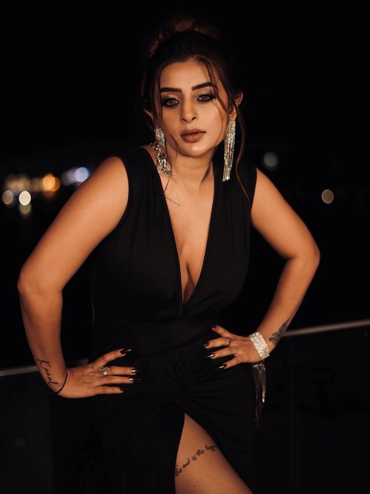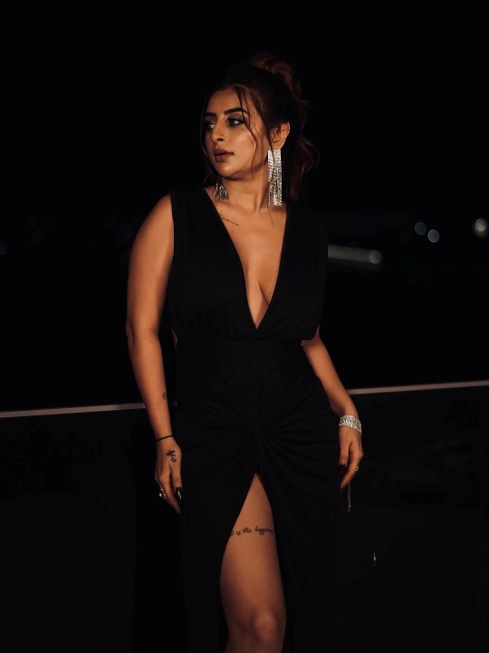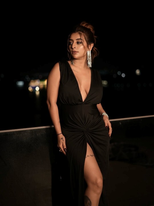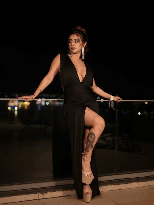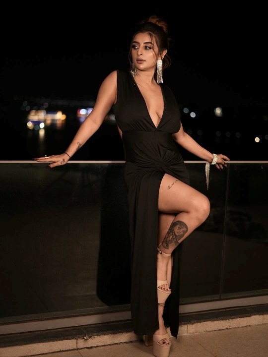 Ankita dave, age 32, born and raised in rajkot, gujarat, is one of the leading digital content creator, model, actress and social media influencer. Recently, ankita dave posed hot in a sleeveless deep V-neck high slit gown. Ankita dave exposed her hot cleavage and thunder thighs in these hot photos. Here let me post some of these gorgeous black high slit gown photos of actress ankita dave for your viewing pleasure dudes. Enjoy her hotness guys..