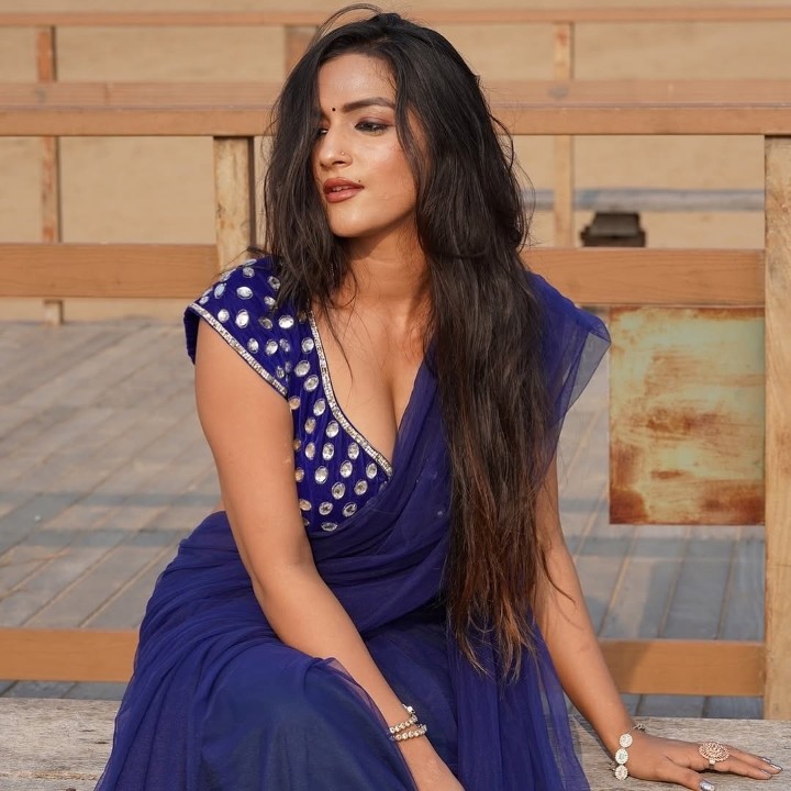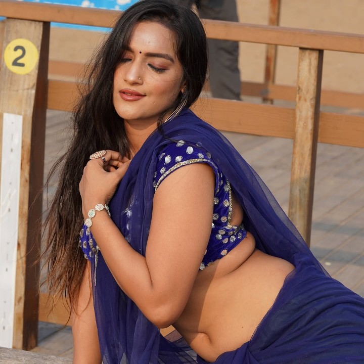 Kushi yadav, age 26, born and raised in prayagraj, uttar pradesh, is one of the gorgeous model, actress, social media influencer and Miss teen diva finalist. Few days ago, kushi yadav clicked her gorgeous photos in a blue color low hip saree in her terrace. In these hot low hip saree, kushi yadav exposed her chubby navel, navel folds and belly button to her fans. Here let me post these gorgeous navel photos of kushi yadav. Enjoy her navel dudes.