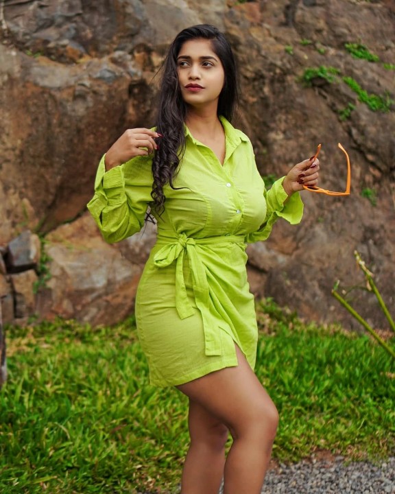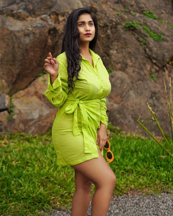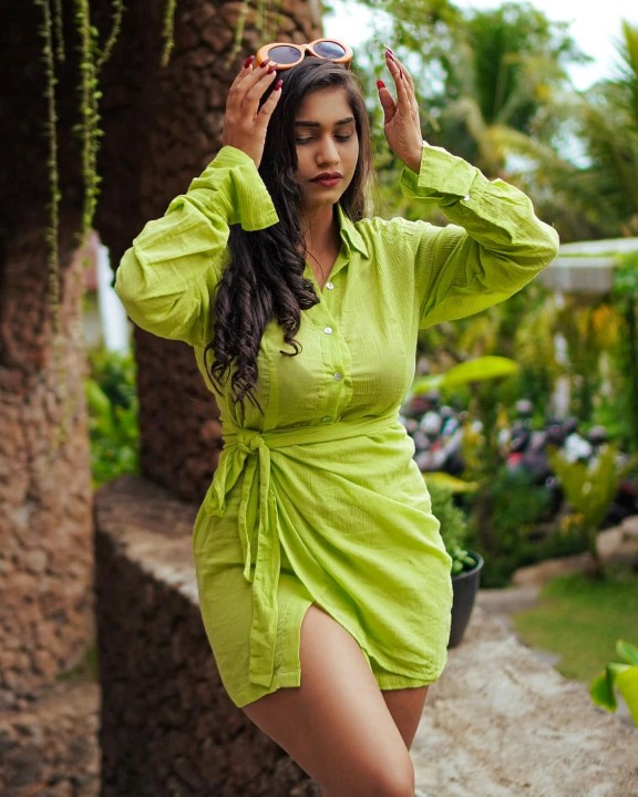 Pratika Sood, an actress and model born and raised in Delhi, recently posed in a green shrug-style outfit, walking gracefully in a stunning photoshoot. In these pictures, Pratika Sood flaunts her toned physique and radiant, well-shaped thighs, offering a glamorous visual treat. Enjoy these hot photos of actress Pratika Sood, dear friends.