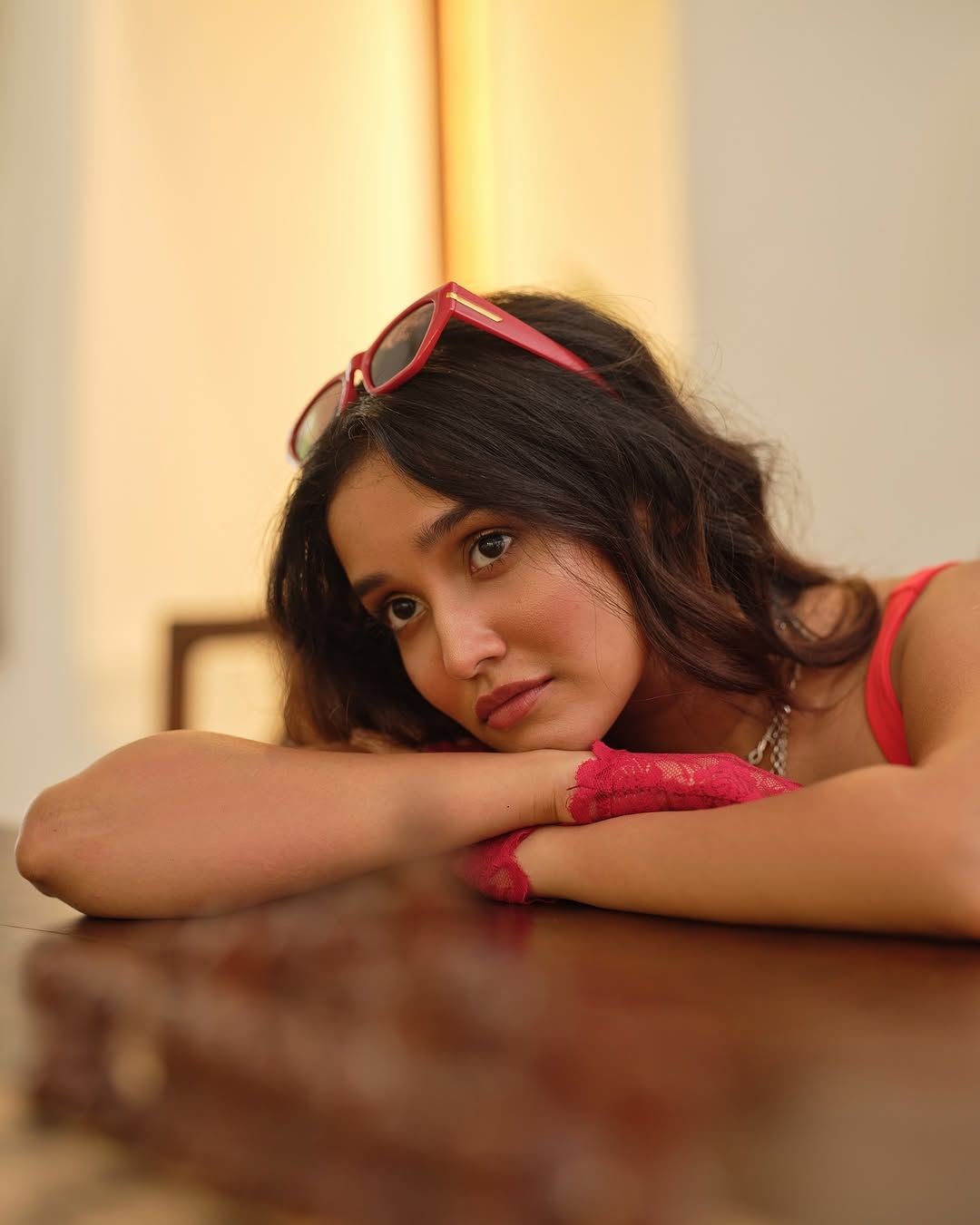 Anikha surendran, the gorgeous malayalam movie actress and model. Anikha surendran once stole the hearts of fans as a child artist is now ricking as a leading glam heroine. Recently anikha surendran clicked her caltivating photos in a red sleeveless top and pant. Enjoy these gorgeous photos of actress anikha in red outfit here guys. Enjoy her hotness.