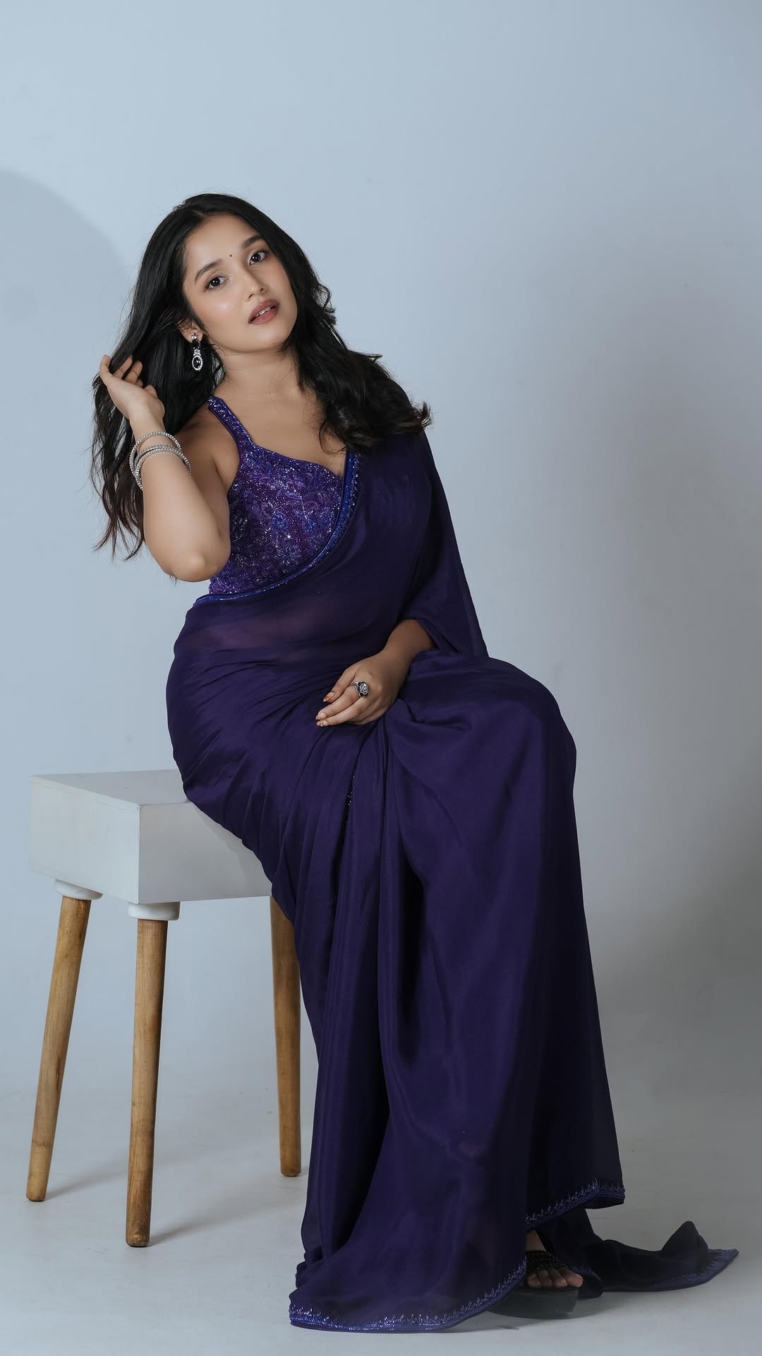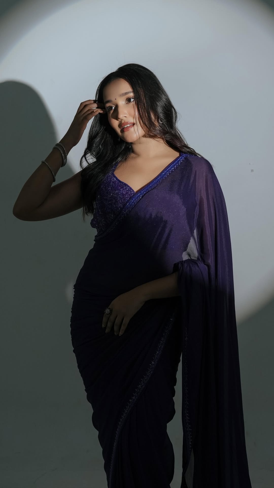 Anikha surendran recently spotted in a malayalam movie event in a dark blue semi transparent bare back sleeveless saree. She completely transformed from a child artist to a gorgeous glamour heroine. In this scorching saree outfit, anikha surendran mesmerized her fans with her radiant smile and spicy toned physique. Enjoy these hot bare back saree photos of anikha surendran here guys.