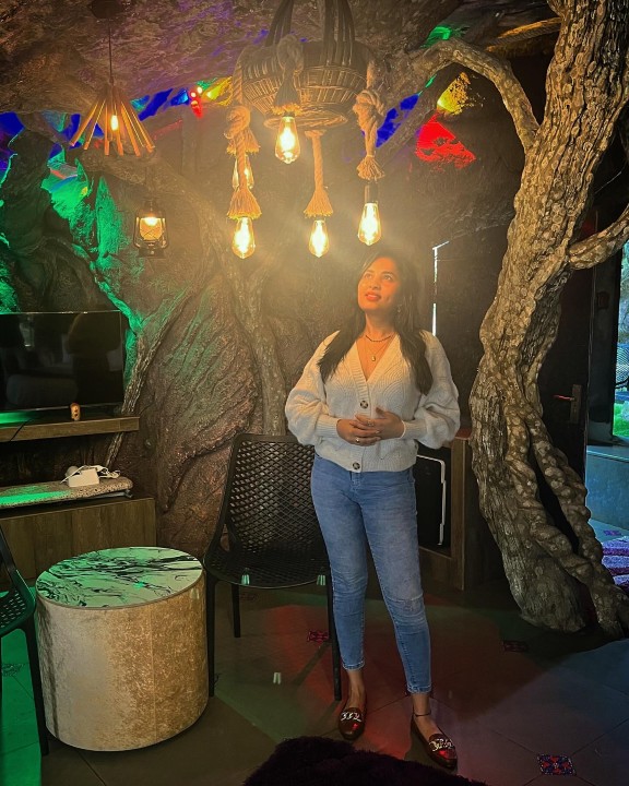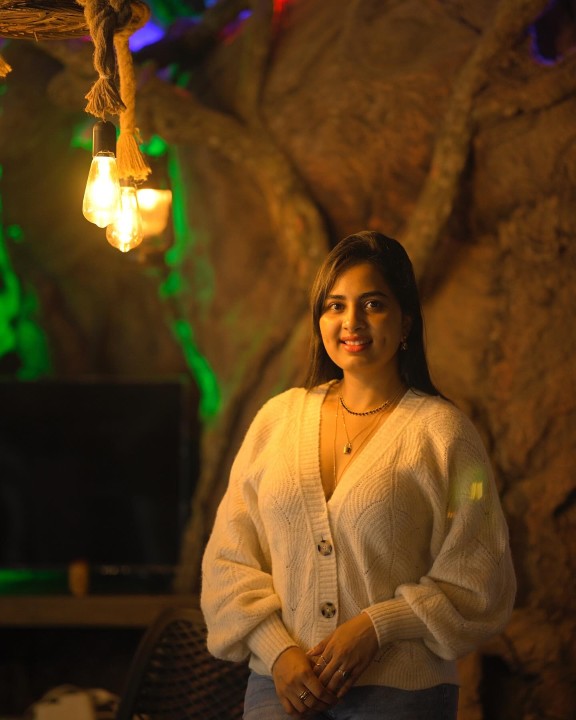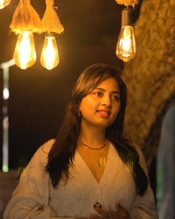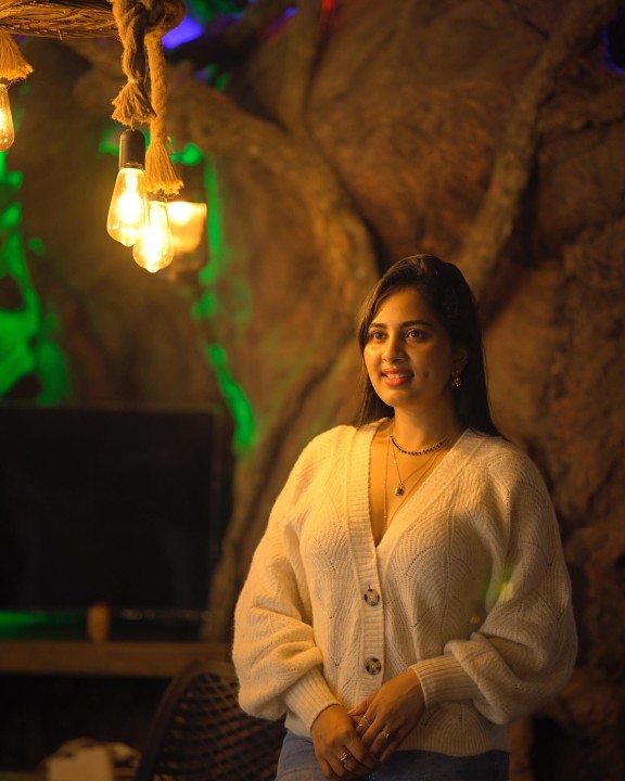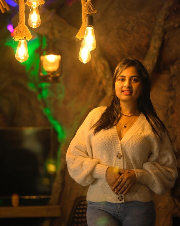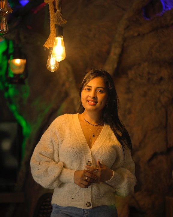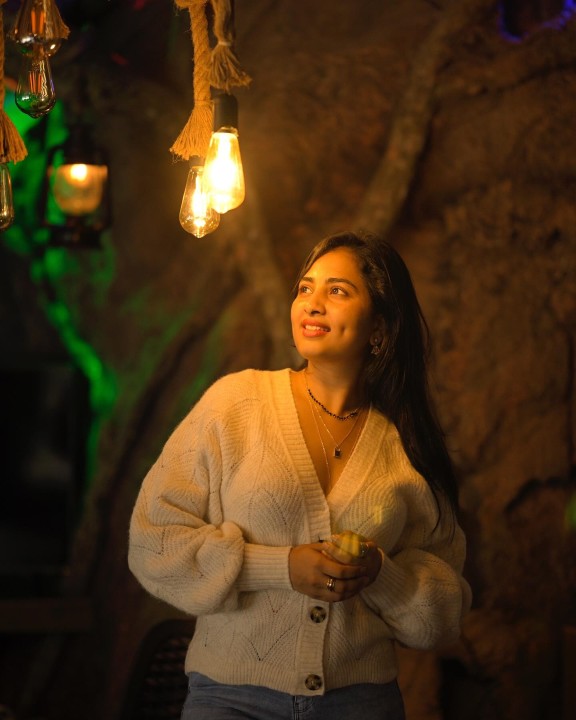 Srushti dange dressed up in a soft cream colored sweater and a blue jeans and posed hot in a mood shoot. In this indoor photoshoot with decorative lights, srushti dange mesmerized her fans with her dazzling smile with a dimple formed on the cheek. Srushti also flaunted her cute cleavage in these gorgeous mood shoot photos. Enjoy these gorgeous mood shoot photos of actress srushti dange which i’ve posted here guys.