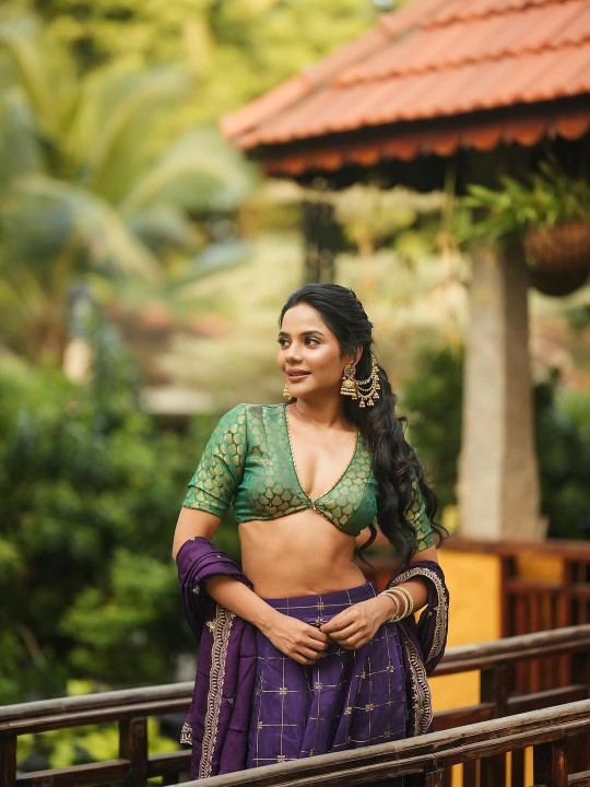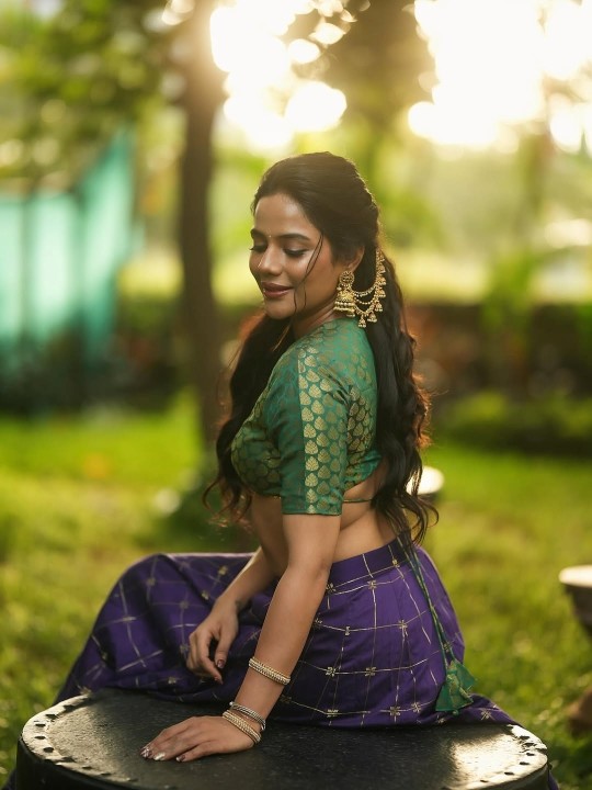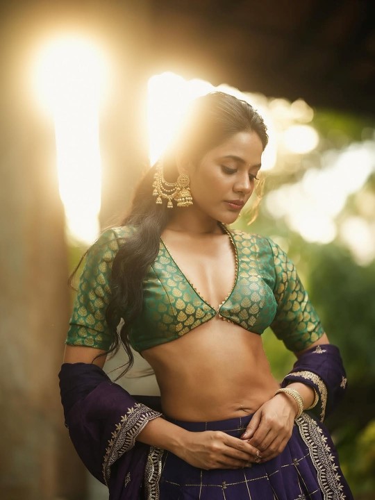 Aishwarya dutta, age 35, born and raised in kolkata, is one of the gorgeous and glamour tamil movie actress, model and bigg boss 2 tamil contestant. Recently, aishwarya dutta clicked her hot photoshoot in a green low neck blouse and blue silk skirt, exposing her cleavage to her fans. Here let me post some of these gorgeous photos of actress aishwarya dutta for your viewing pleasure friends. Enjoy her cuteness guys..