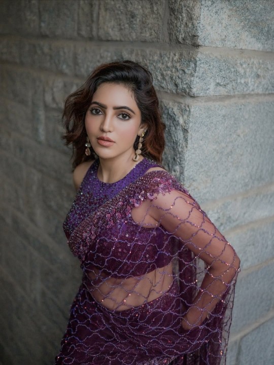 Athulya ravi, age 31. born and raised in coimbatore, is one of the leading and gorgeous tamil movie actress and model. Few days ago, athulya ravi dressed up in a violet color transparent saree and gave some cute and gorgeous poses. In these cute photos, athulya ravi exposed her silky navel and toned physique to her fans. Get ready to witness these cute saree photos of athulya ravi, which i have uploaded here dudes..