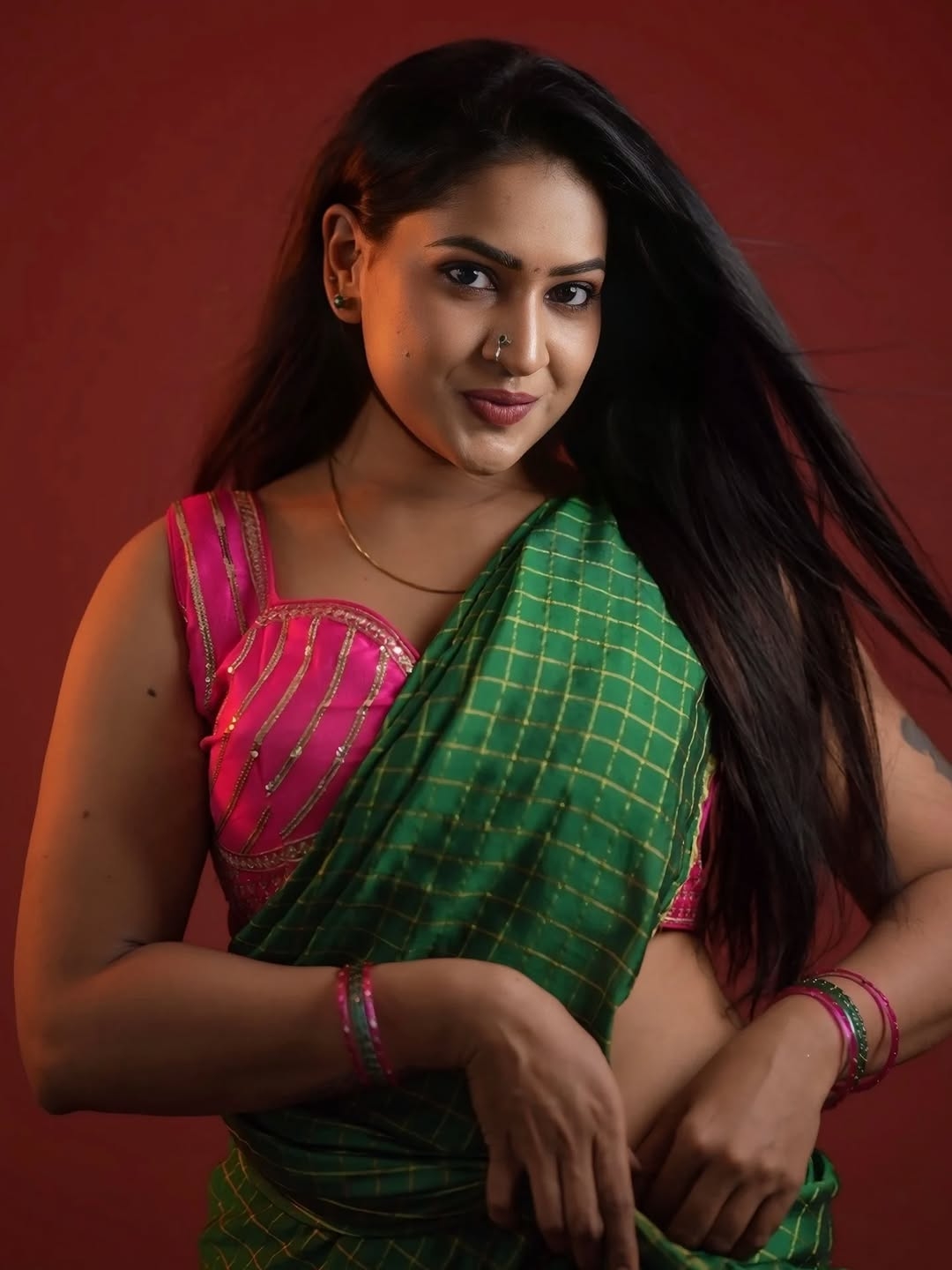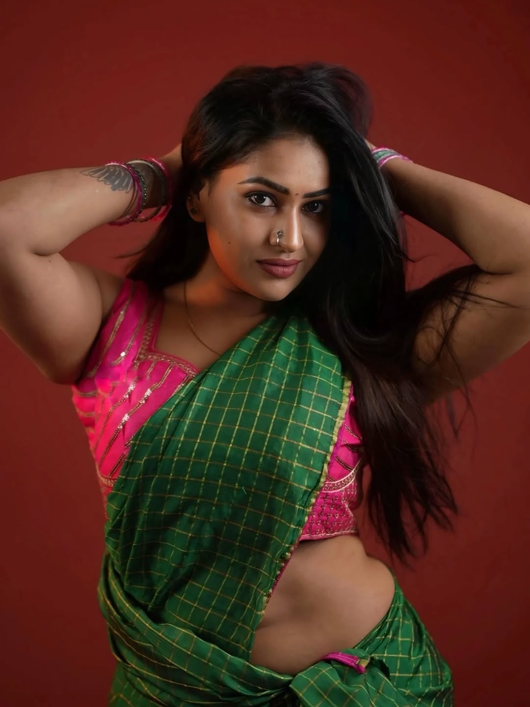 Nithya raj, a gorgeous and hot south indian actress and model. Her last tamil movie to hit the theatres was “Evil”, released on 2022. Recently, nithya raj dressed up in a green sleeveless saree and gave some hot poses to mesmerize her fans. In these hot photos, nithya raj exposed her chubby curvy navel to her fans. Here let me post some of these gorgeous photos of nithya raj for your viewing pleasure. Enjoy her hotness guys.