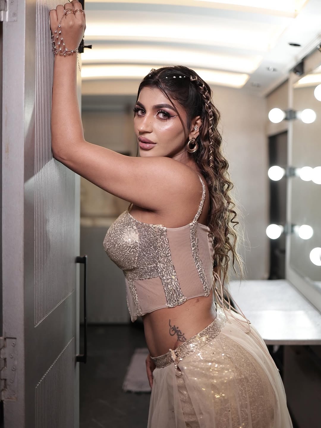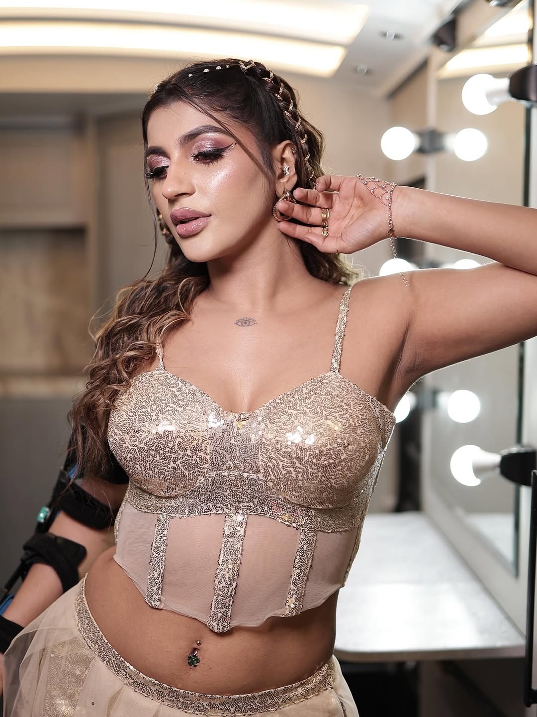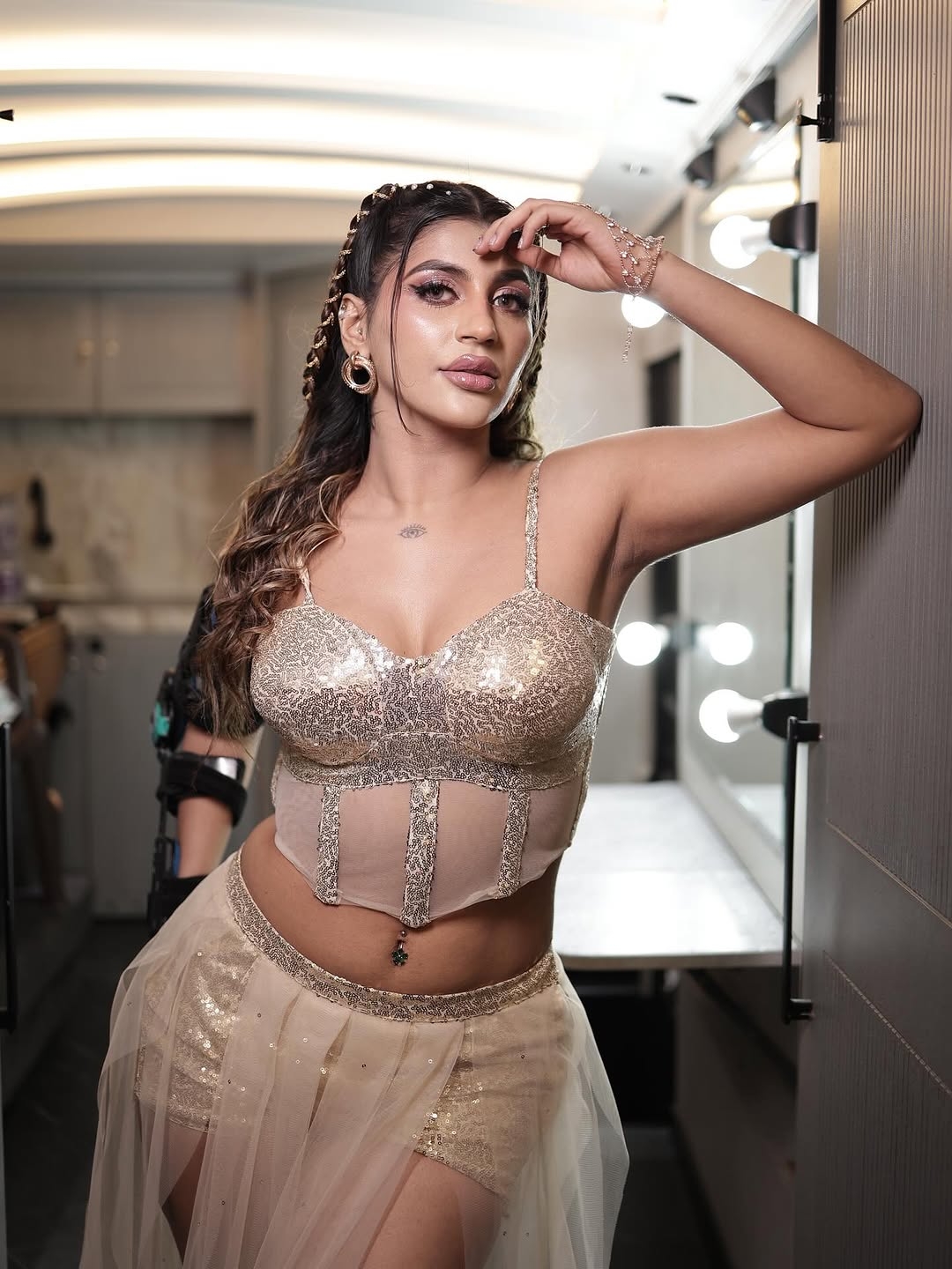 Yashika aannand sizzles in a glamorous fusion outfit..